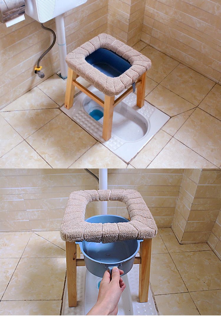• 6개의 나무 기둥, 높이 40cm + 손잡이 + 바닥이 없는 비말 방지 버킷 + 두꺼운 커버, 무료 미끄럼 방지 매트