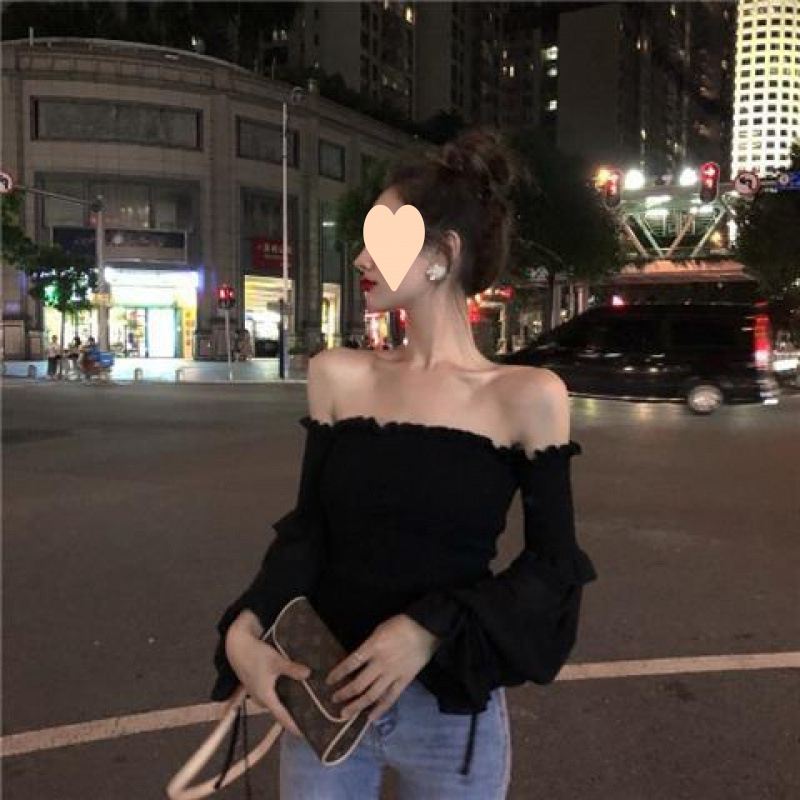 어깨 섹시한 봄과 가을 긴 소매 검은 셔츠 여자의 2025 새로운 단단한 내베이스 셔츠 셔츠 어깨 탑스토어 가기