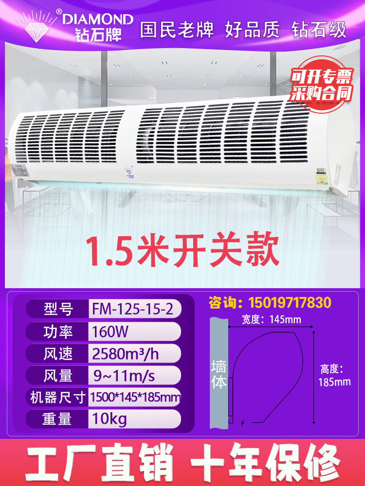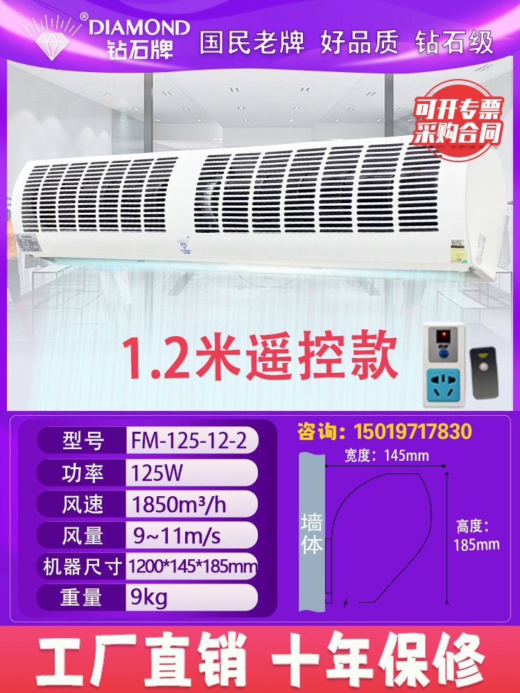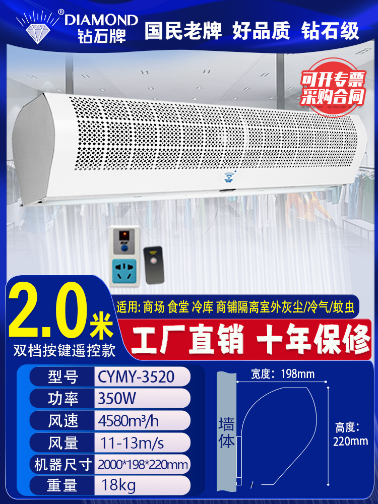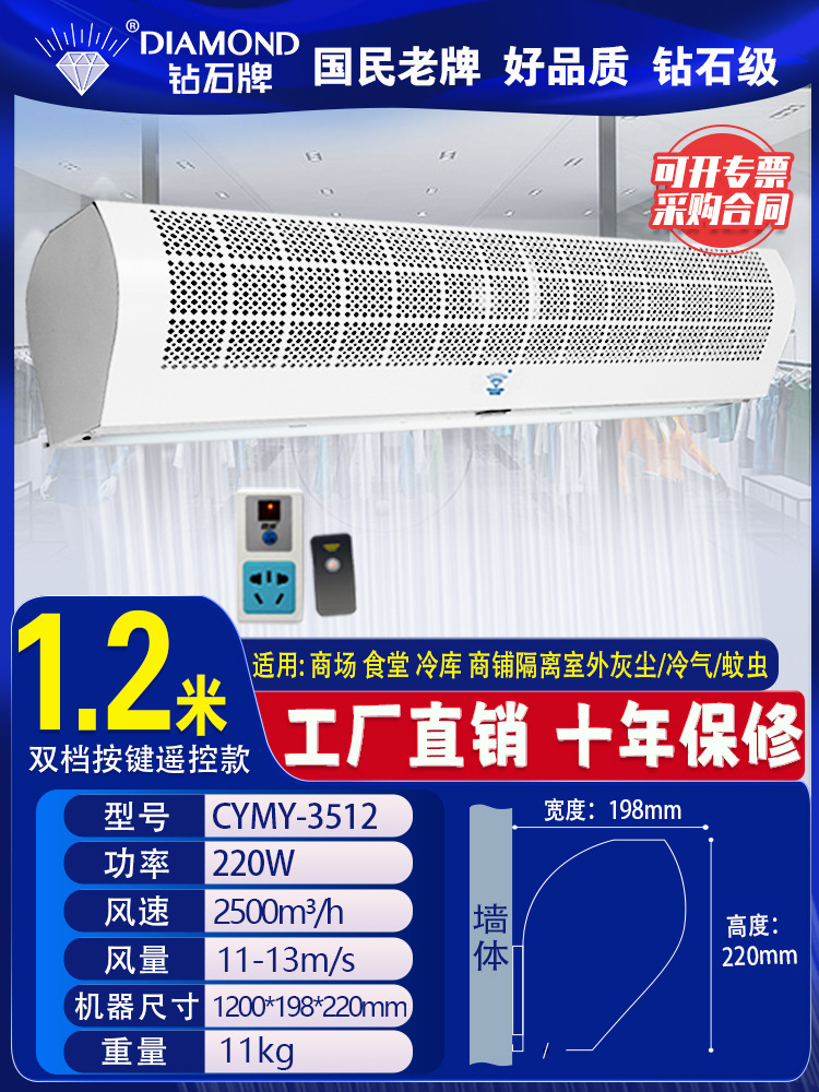 다이아몬드 브랜드 에어 커튼 기계 1.5 미터 상업용 음소거 1.8 미터 에어 커튼 1.2 미터 도어 구강 2 냉장 보관 엘리베이터