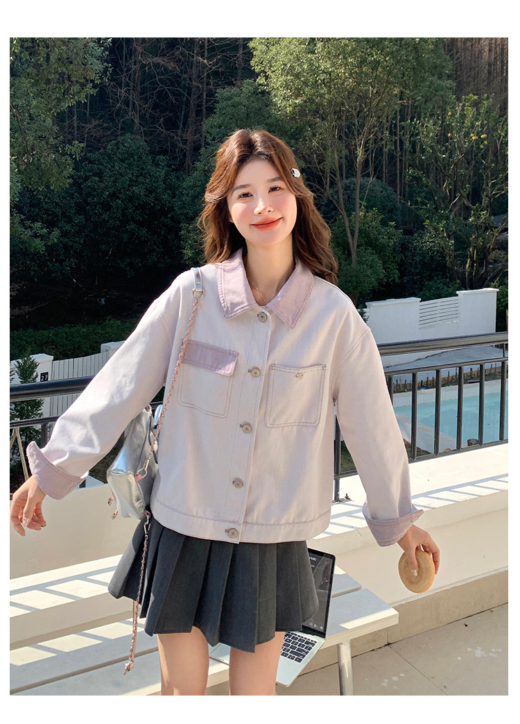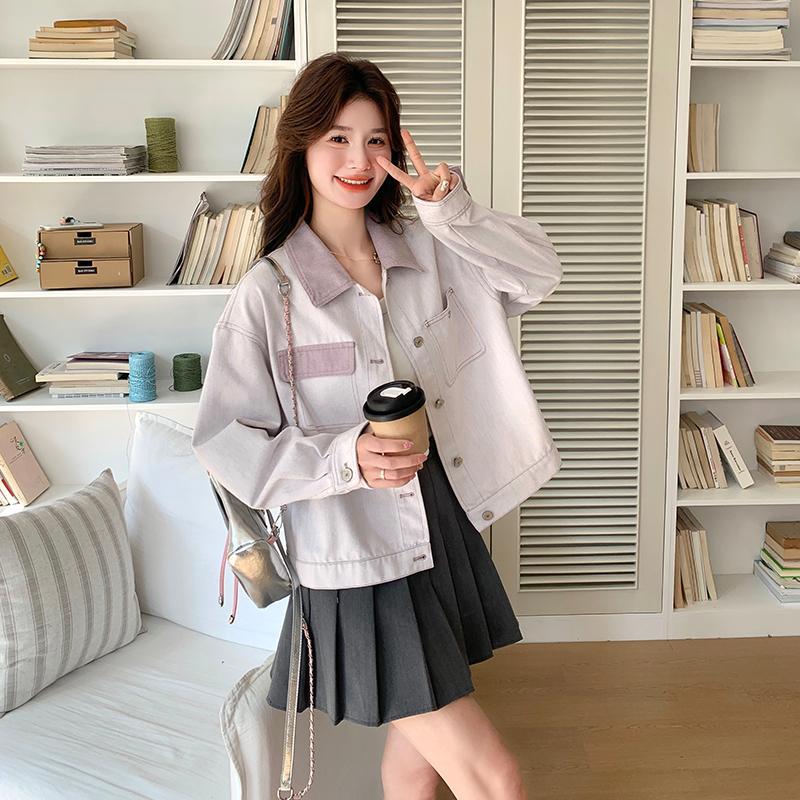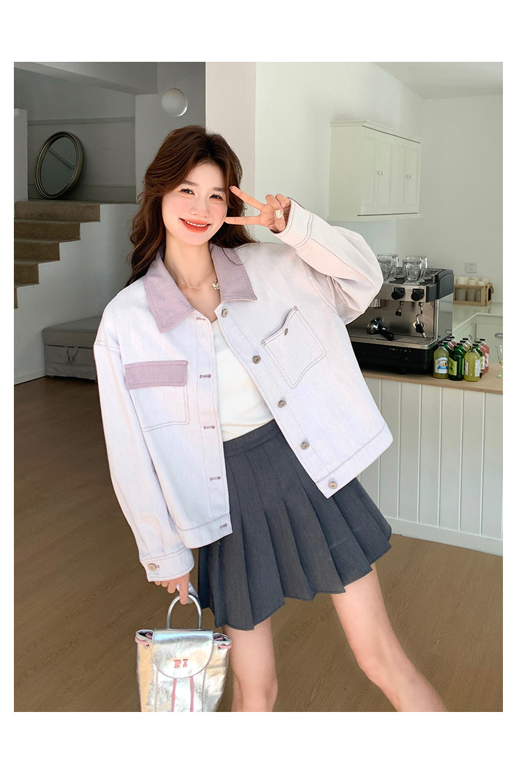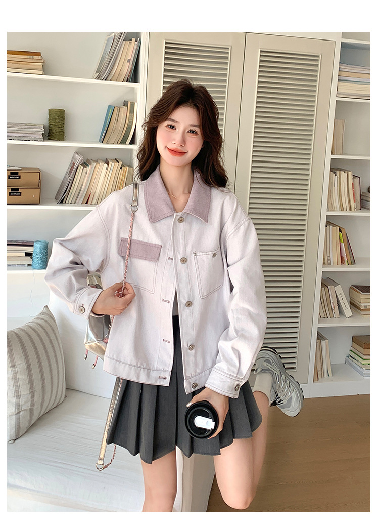 대조적 인 색상 스티칭 캐주얼 코트 여성 대학 스타일 연령 감소 2025 봄 새로운 슈퍼 잘 생긴 올 매치 재킷 탑스토어 가기