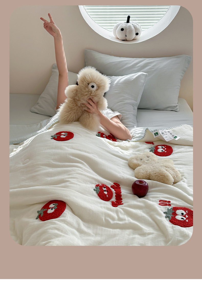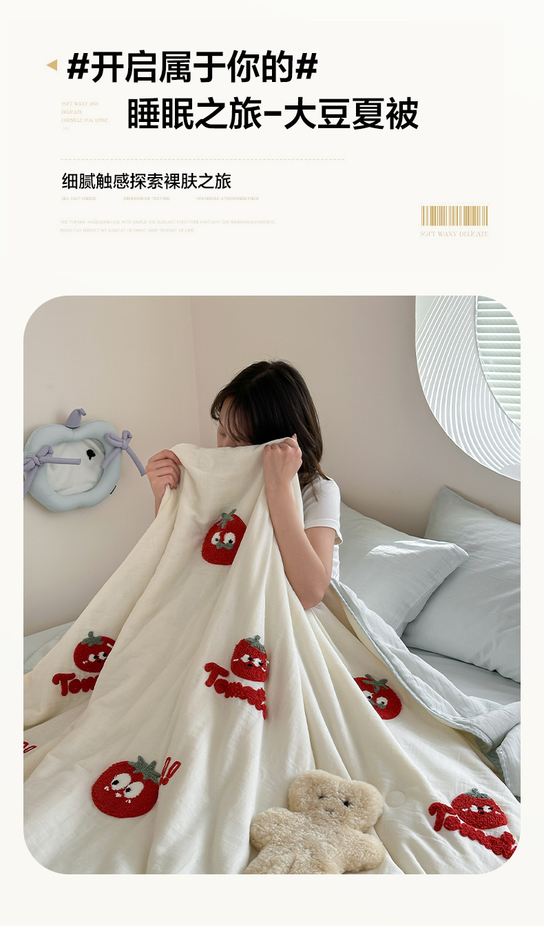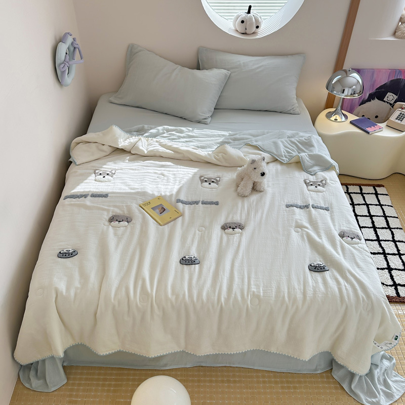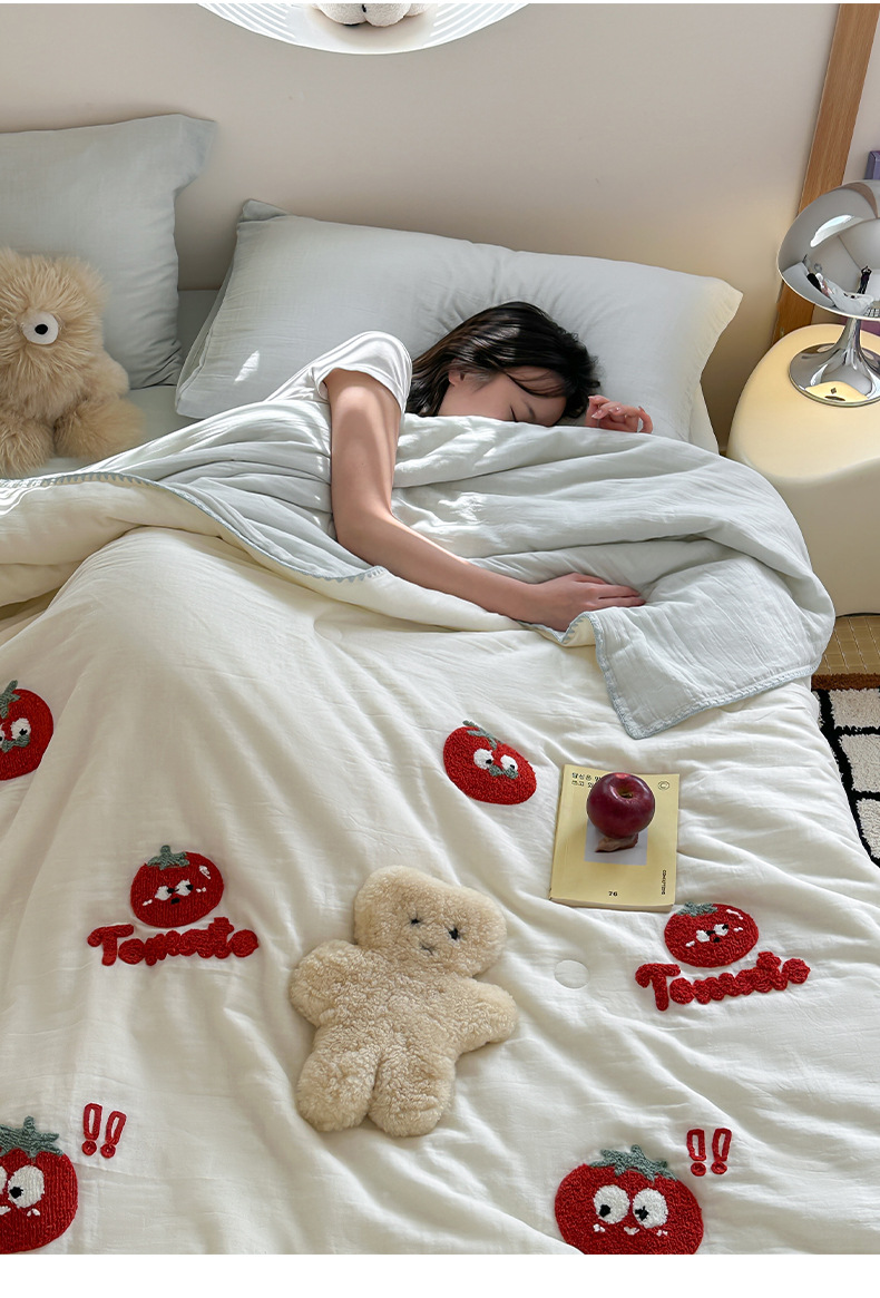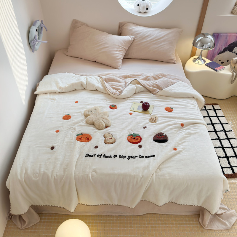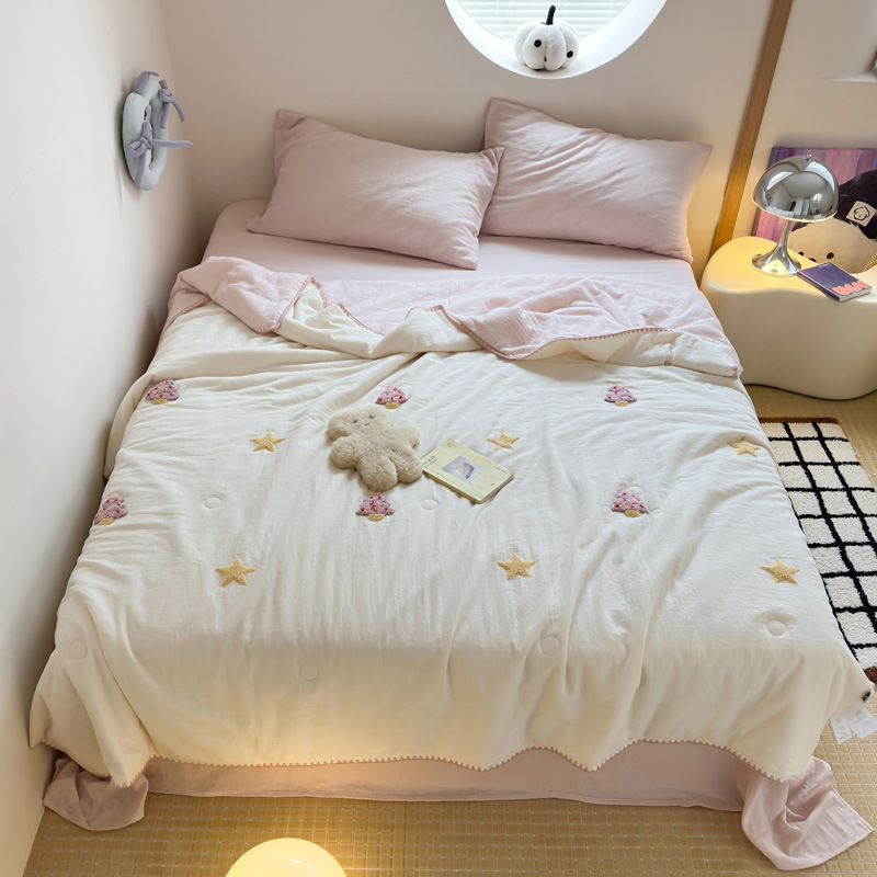 2025 새로운면 이중층 원사 주름진 실 타월 수 놓은 여름 이불 코어 부드럽고 편안한 얇은 이불 여름 이불스토어 가기