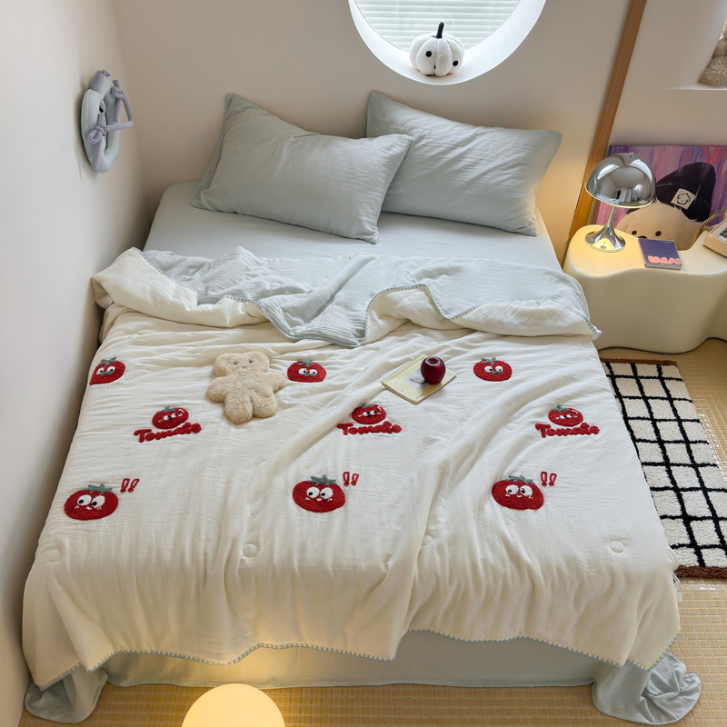 2025 새로운면 이중층 원사 주름진 실 타월 수 놓은 여름 이불 코어 부드럽고 편안한 얇은 이불 여름 이불