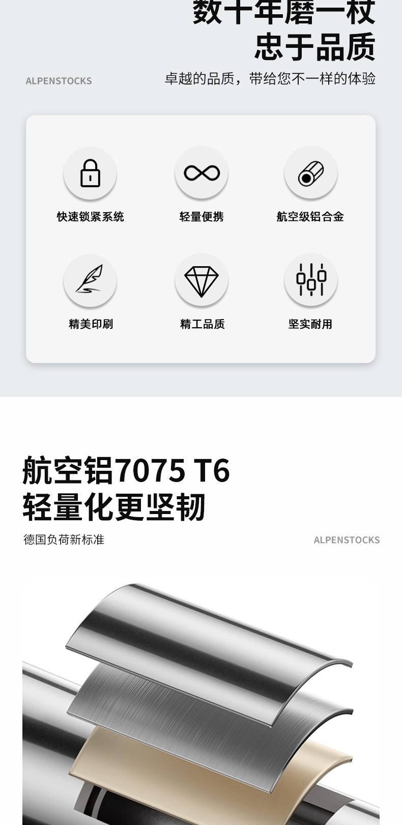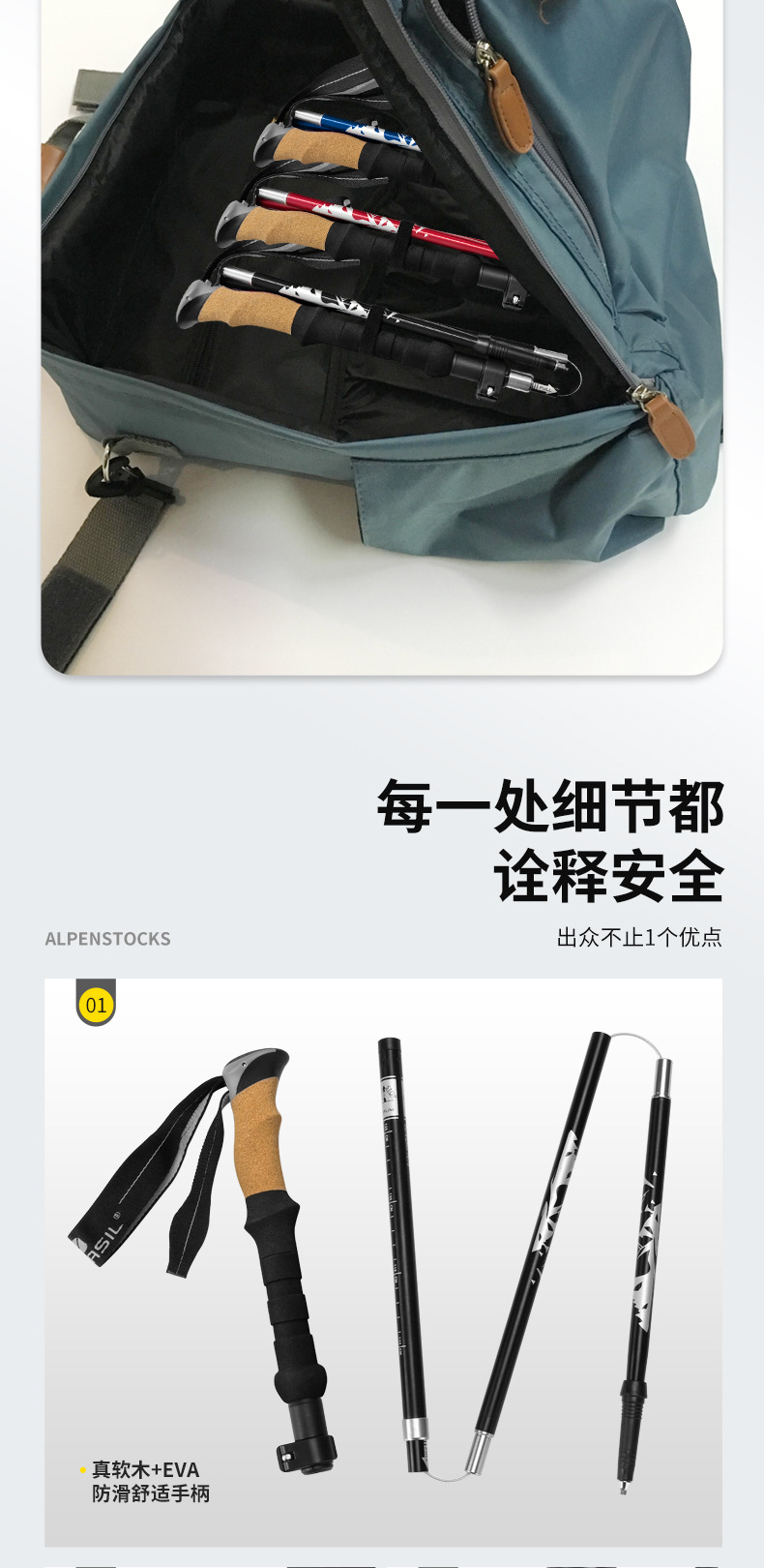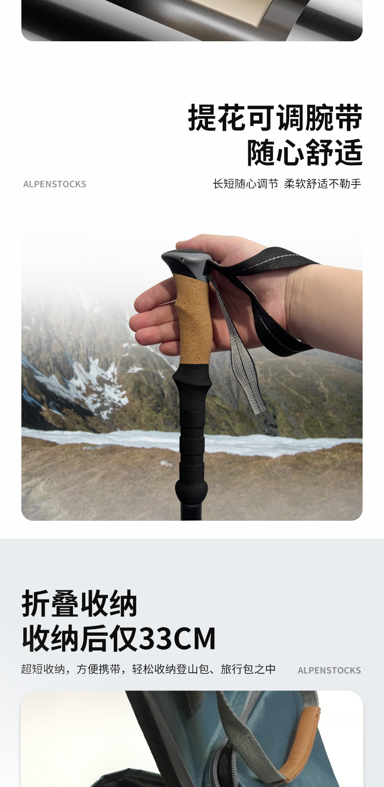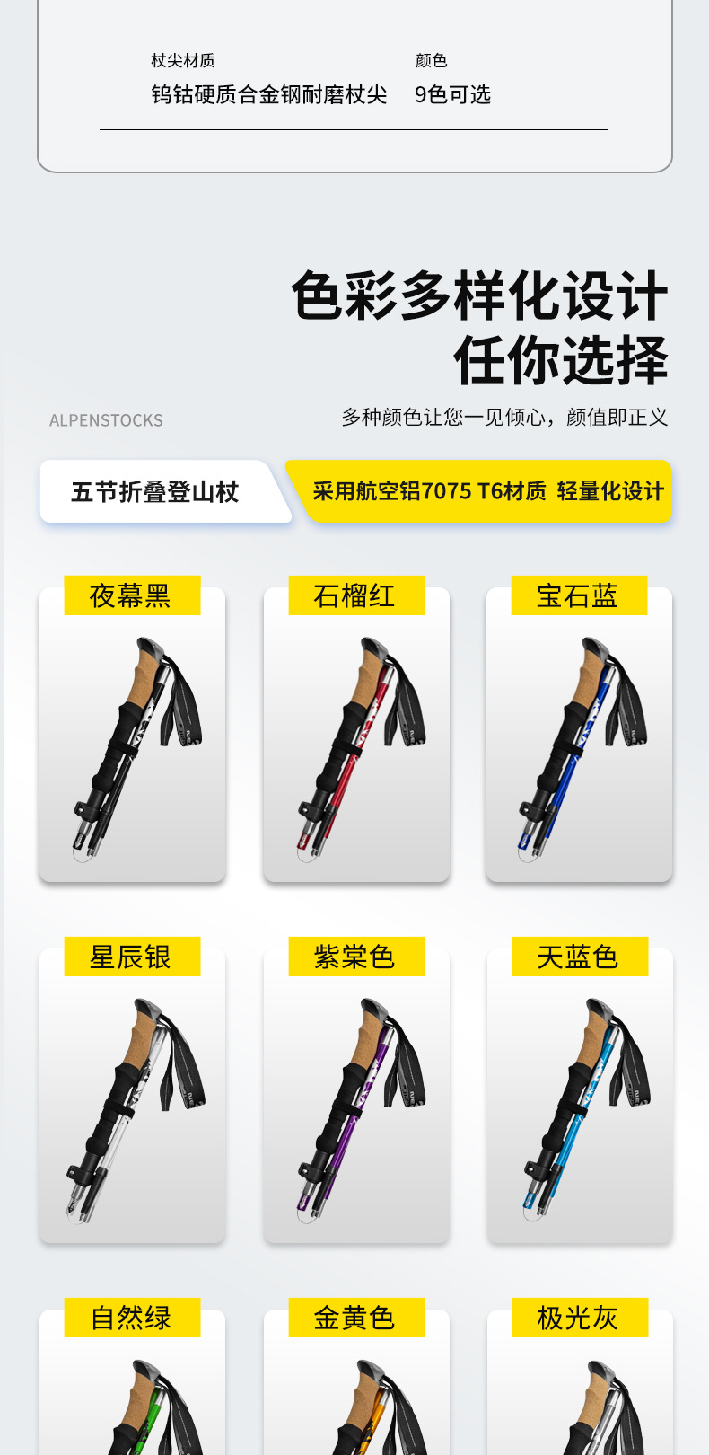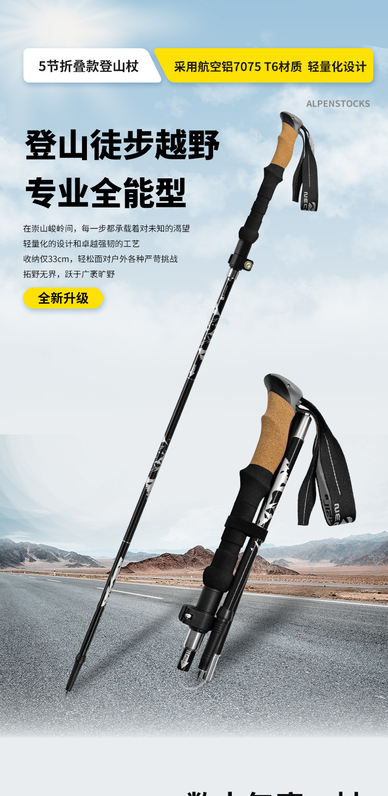 알펜스톡 폴딩 7075 T6 알루미늄 합금 초경량 텔레스코픽 야외 5 섹션 울트라 쇼트 클라이밍 지팡이 N88 세트스토어 가기