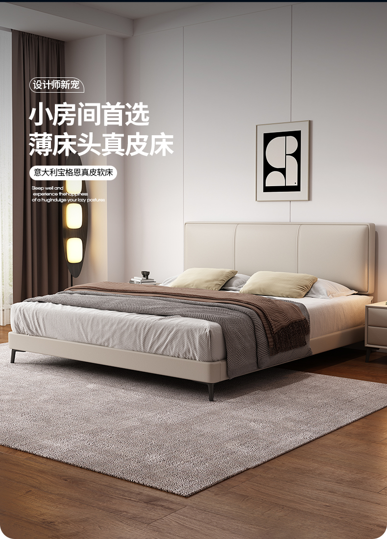 오리엔탈 하트 울트라 얇은 침대 침대 메인 및 두 번째 침실 가죽 가구 1.5 m 현대 간단한 작은 아파트 1.8 m 더블 침대