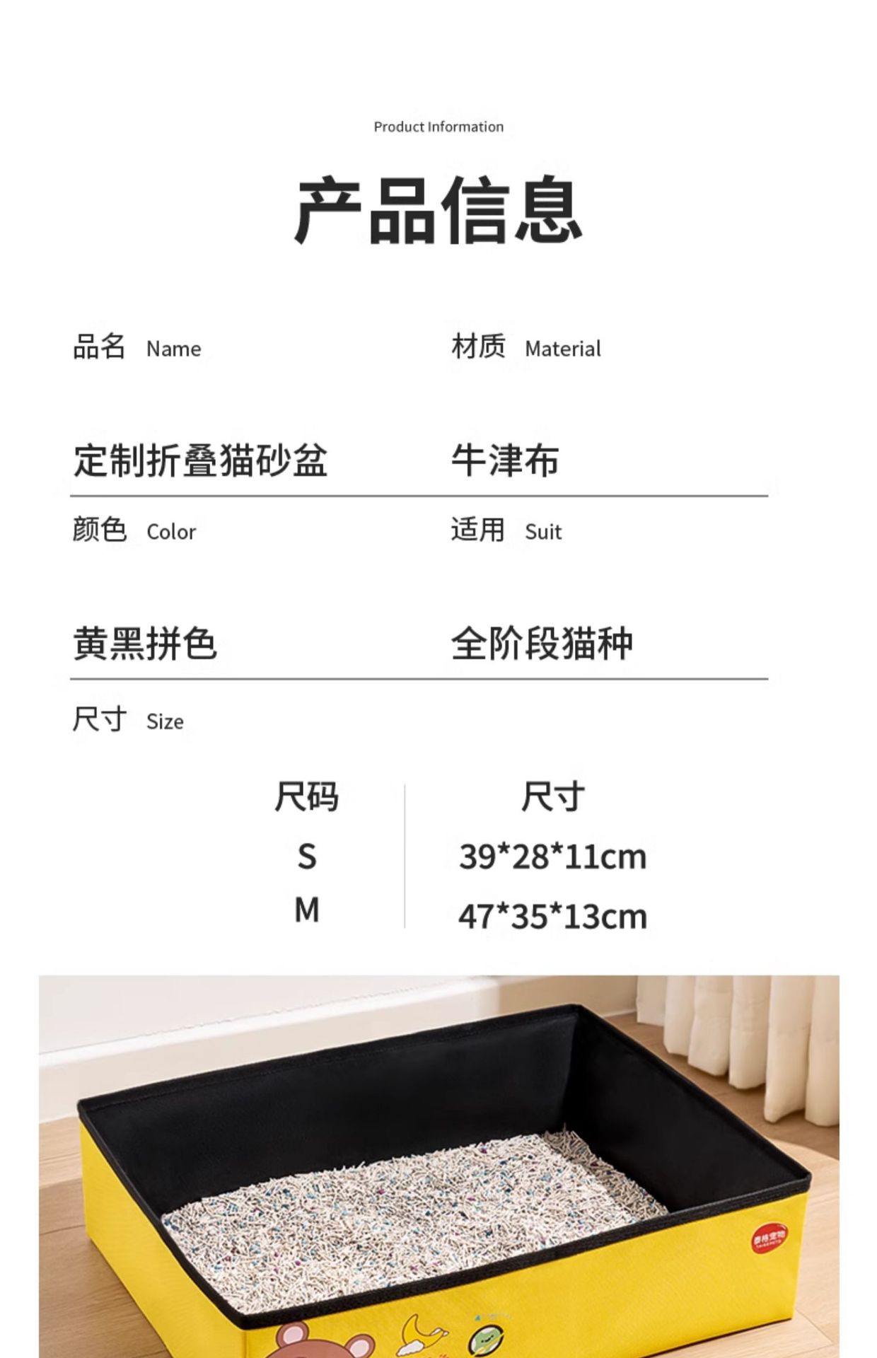 • 노란색 휴대용 고양이 배변 상자 [고양이 배변 국자와 함께 제공]