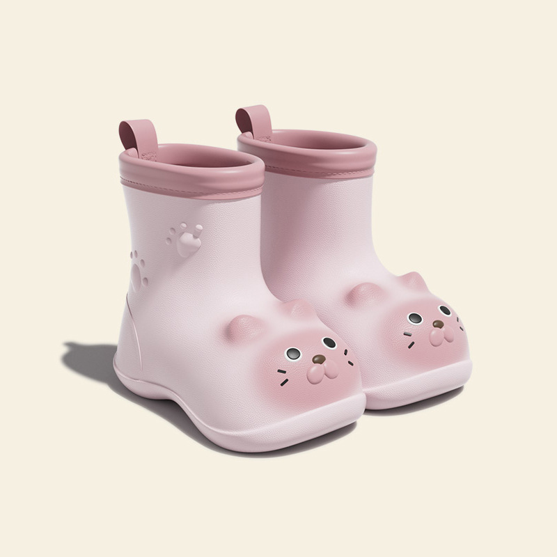새끼 고양이 어린이 비 부츠 소년 미끄럼 비 장화 소녀 만화 경량 어린이 아기 유치원 방수 신발