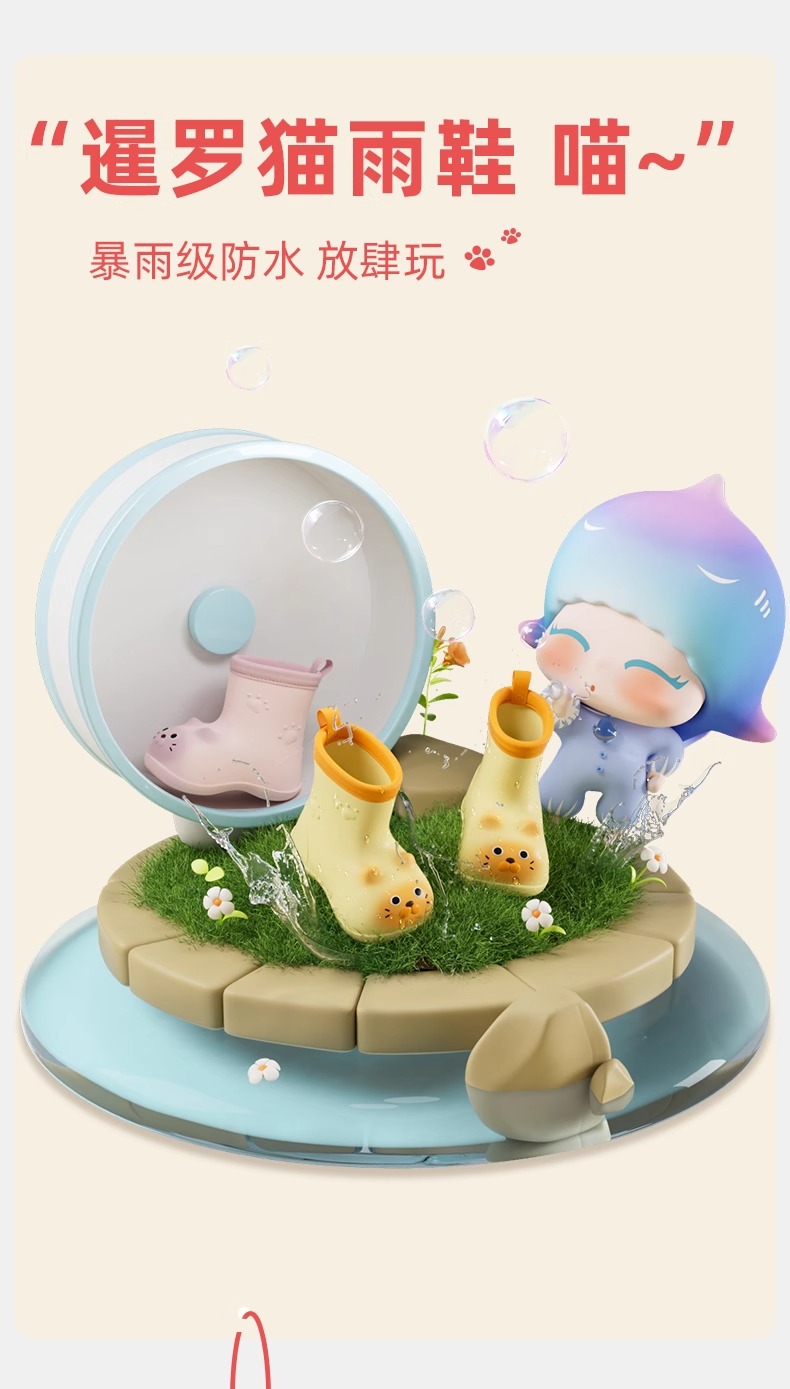 새끼 고양이 어린이 비 부츠 소년 미끄럼 비 장화 소녀 만화 경량 어린이 아기 유치원 방수 신발스토어 가기