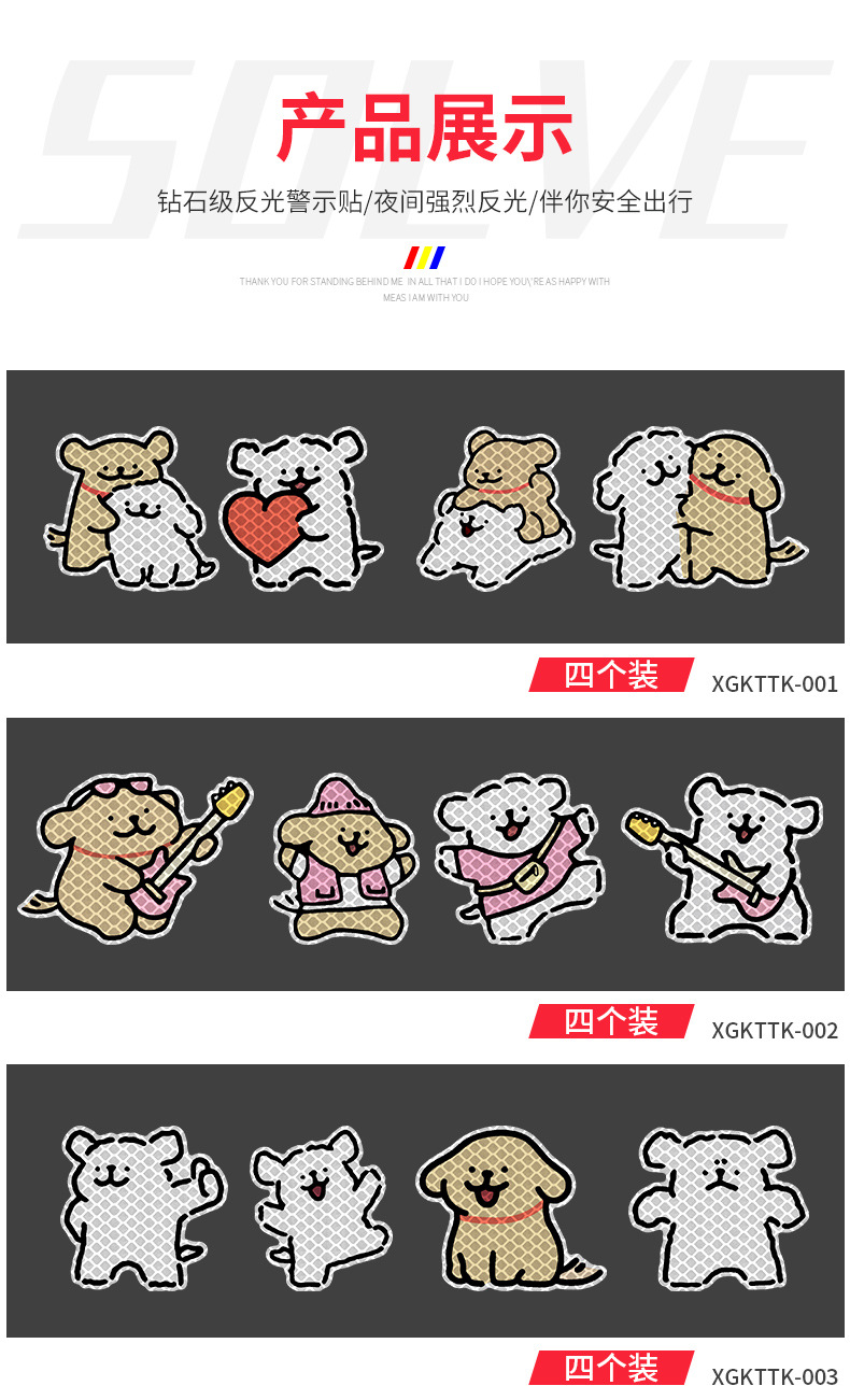 • 스타일 3*귀여운 강아지*4팩(귀여운 반사 경고)
