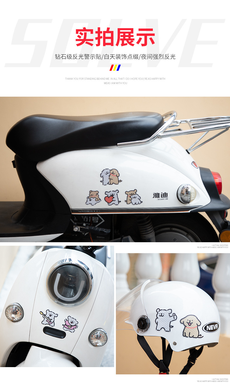 전기 자동차 장식 스티커 만화 창조적 인 성격 헬멧 스티커 Yadi Emma 나이프 트램 경고 반사 스티커