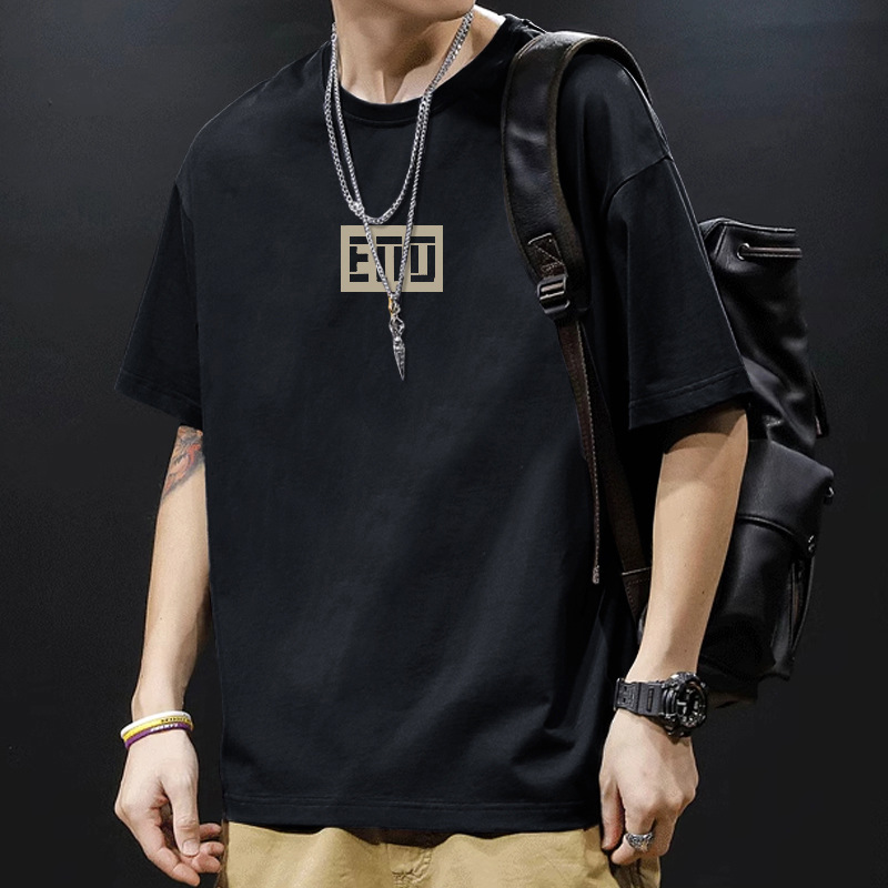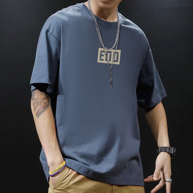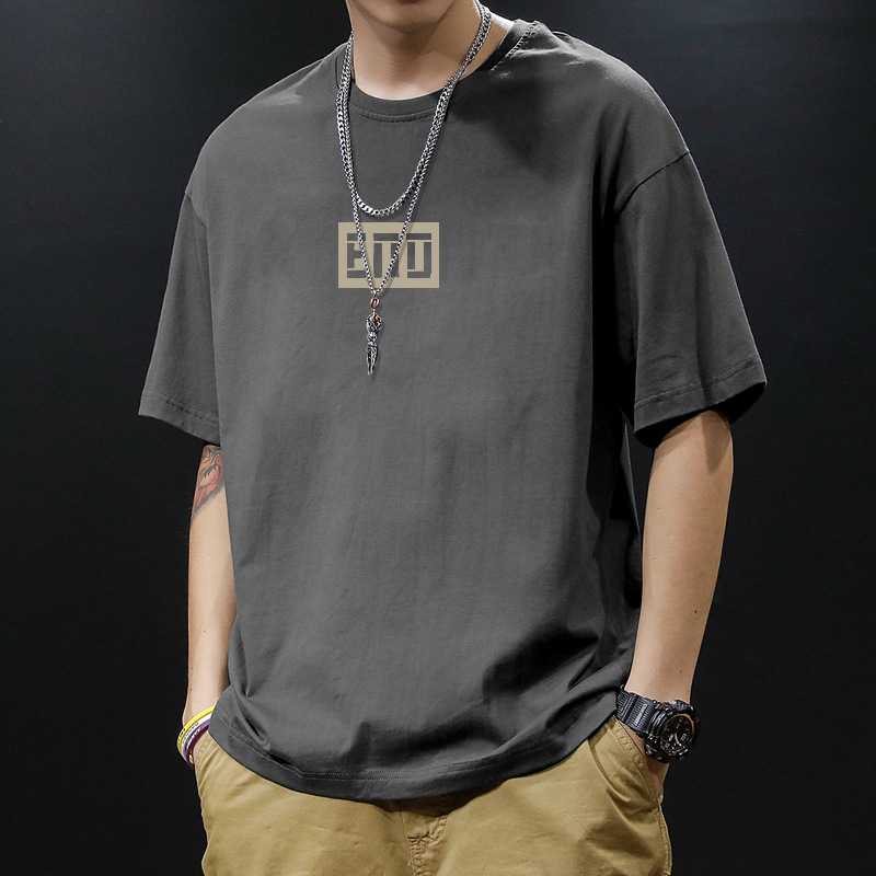 2025 년 여름 남성 반팔 티셔츠 남성용 느슨한 반소매 트렌디 브랜드 티셔츠 탑 라운드 넥