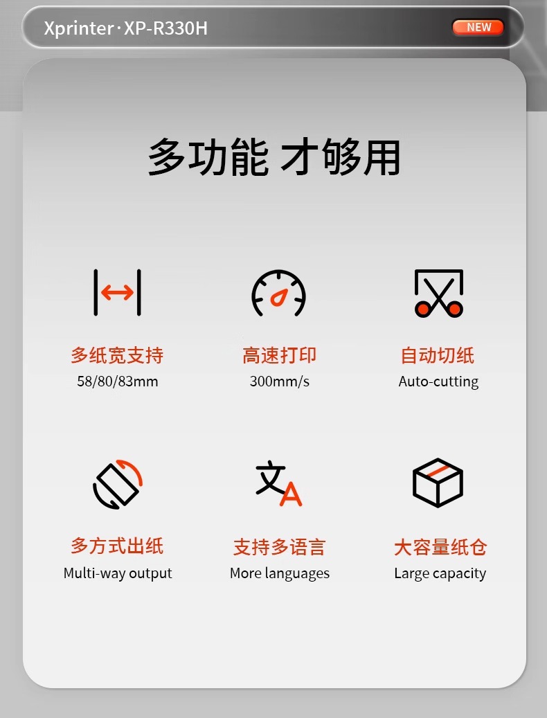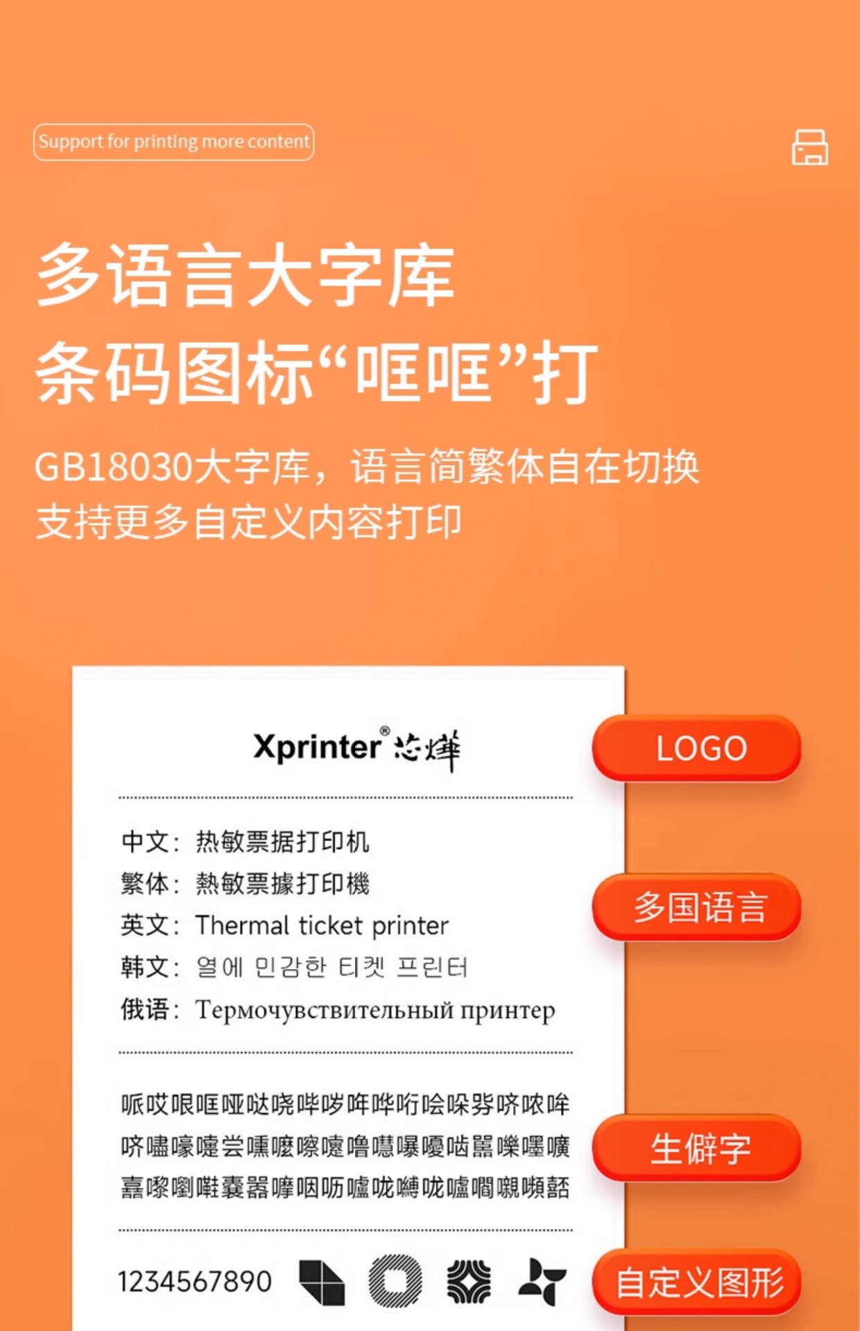 Xinye R330H 다국어 열 영수증 프린터 병원 슈퍼마켓 호텔 레스토랑 출납원 주방 영수증
