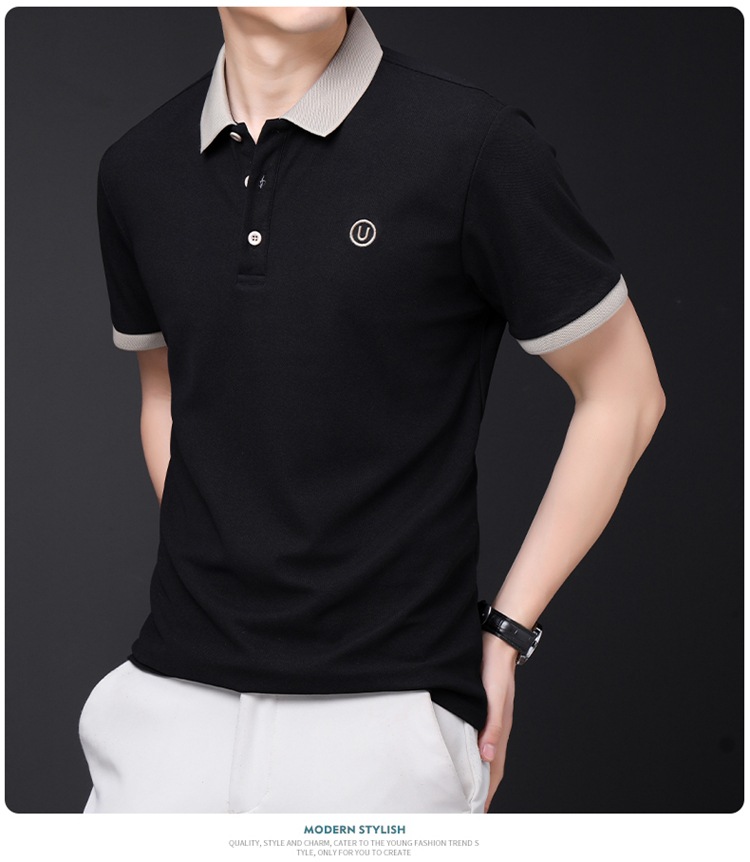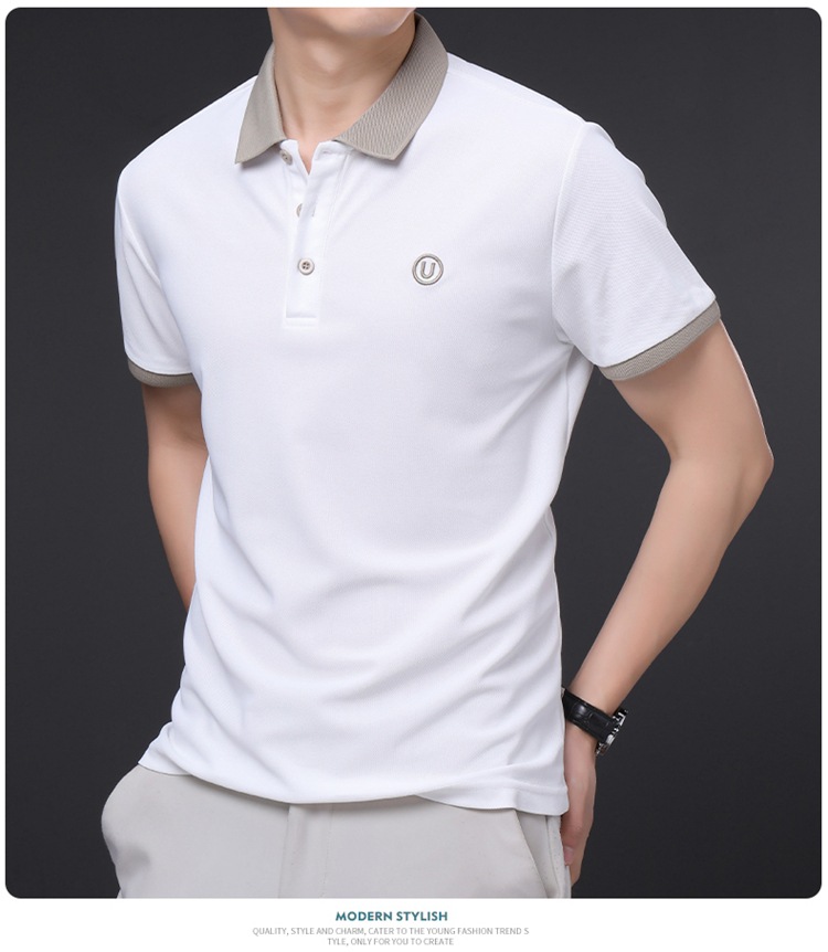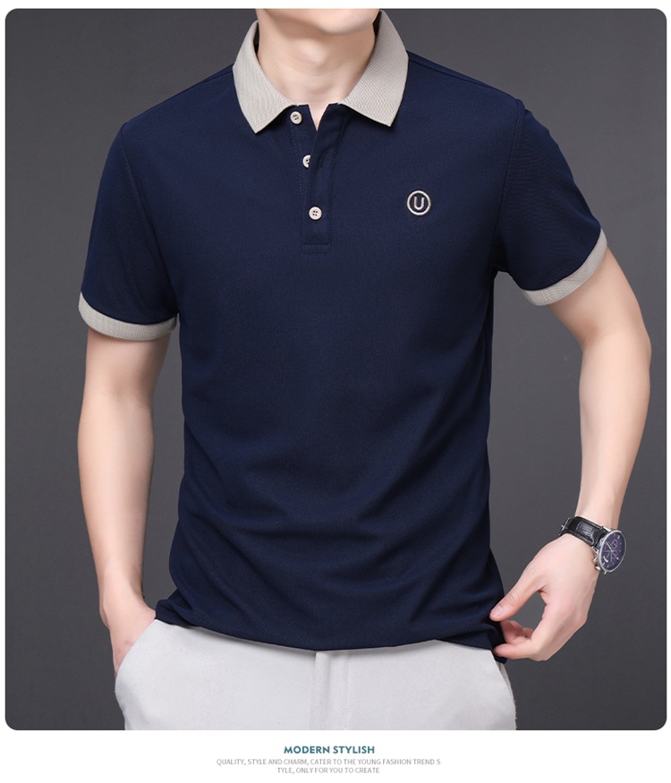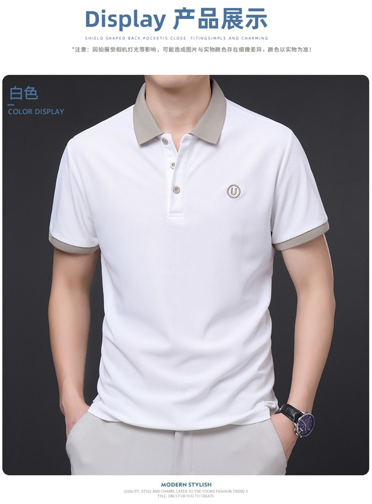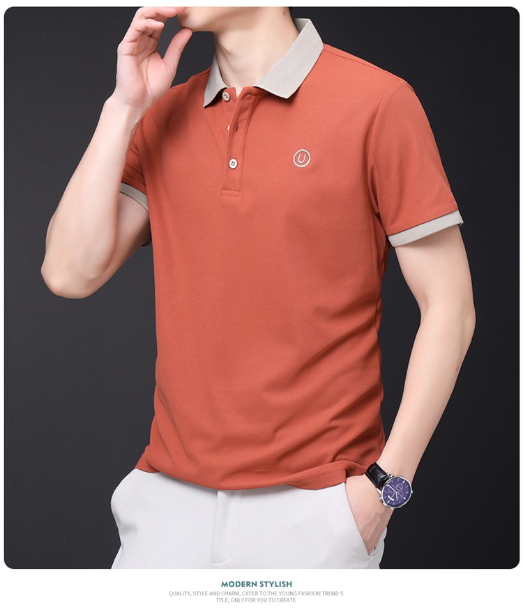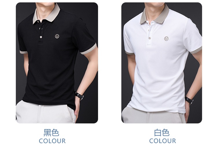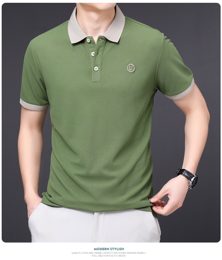 아이스 실크 얇은 반팔 폴로 셔츠 남자 여름 새로운 간단한 캐주얼 올 매치 통기성 쿨 옷깃 티셔츠 남성용스토어 가기