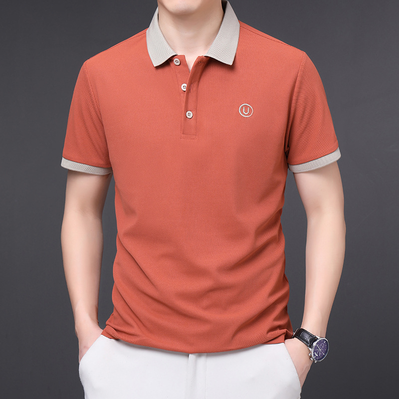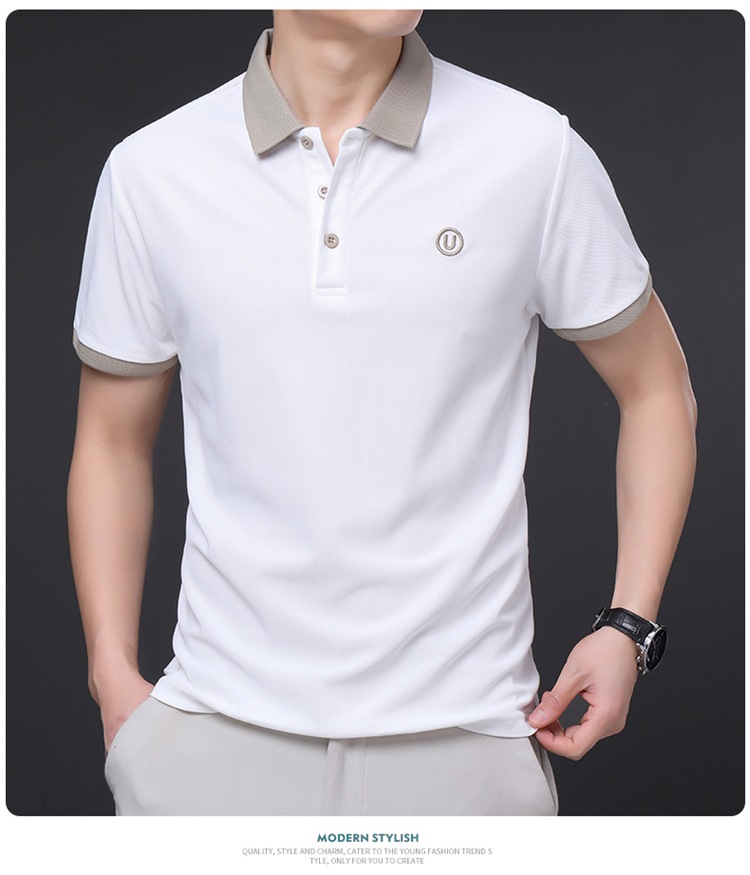 아이스 실크 얇은 반팔 폴로 셔츠 남자 여름 새로운 간단한 캐주얼 올 매치 통기성 쿨 옷깃 티셔츠 남성용