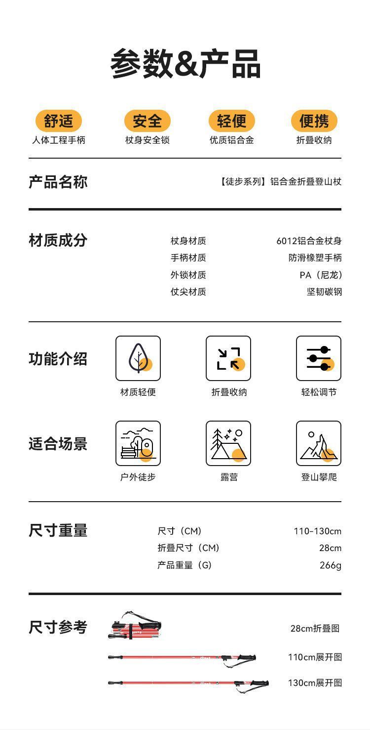 Nipsen 초경량 접이식 하이킹 스틱 개폐식 워킹 스틱 마운틴 클라이밍 장비 탄소없는 워킹 스틱 야외 다기능스토어 가기