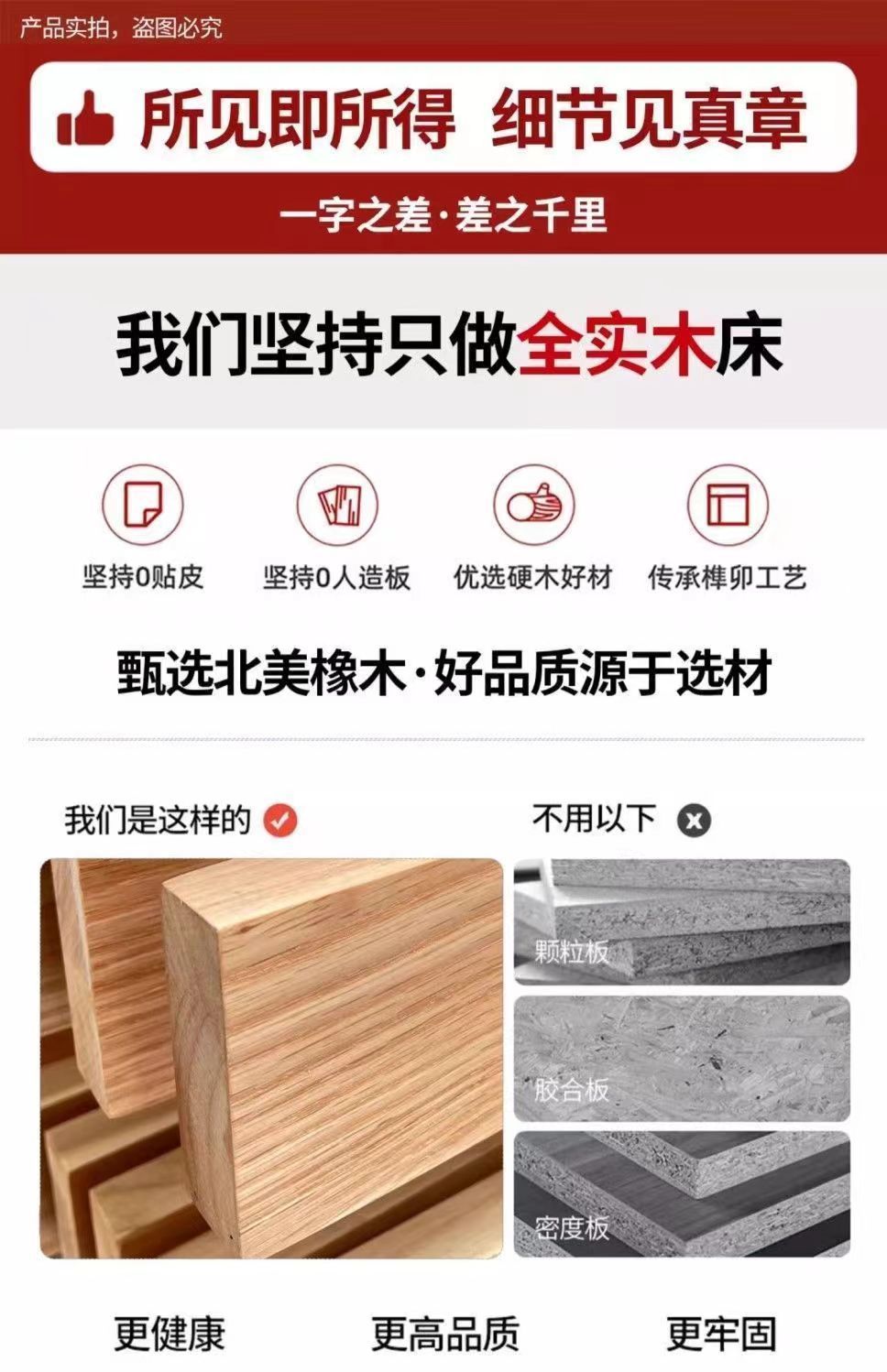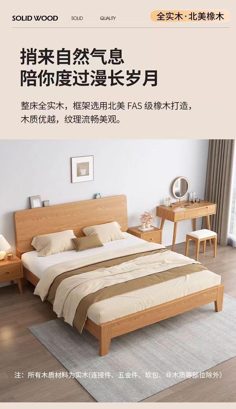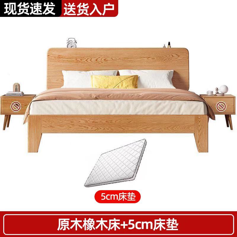 노르딕 오크 침대 현대 간단한 1.8 m 가구 더블 침대 1.5 m 작은 아파트 마스터 침실 1.2m 싱글 침대 프레임스토어 가기