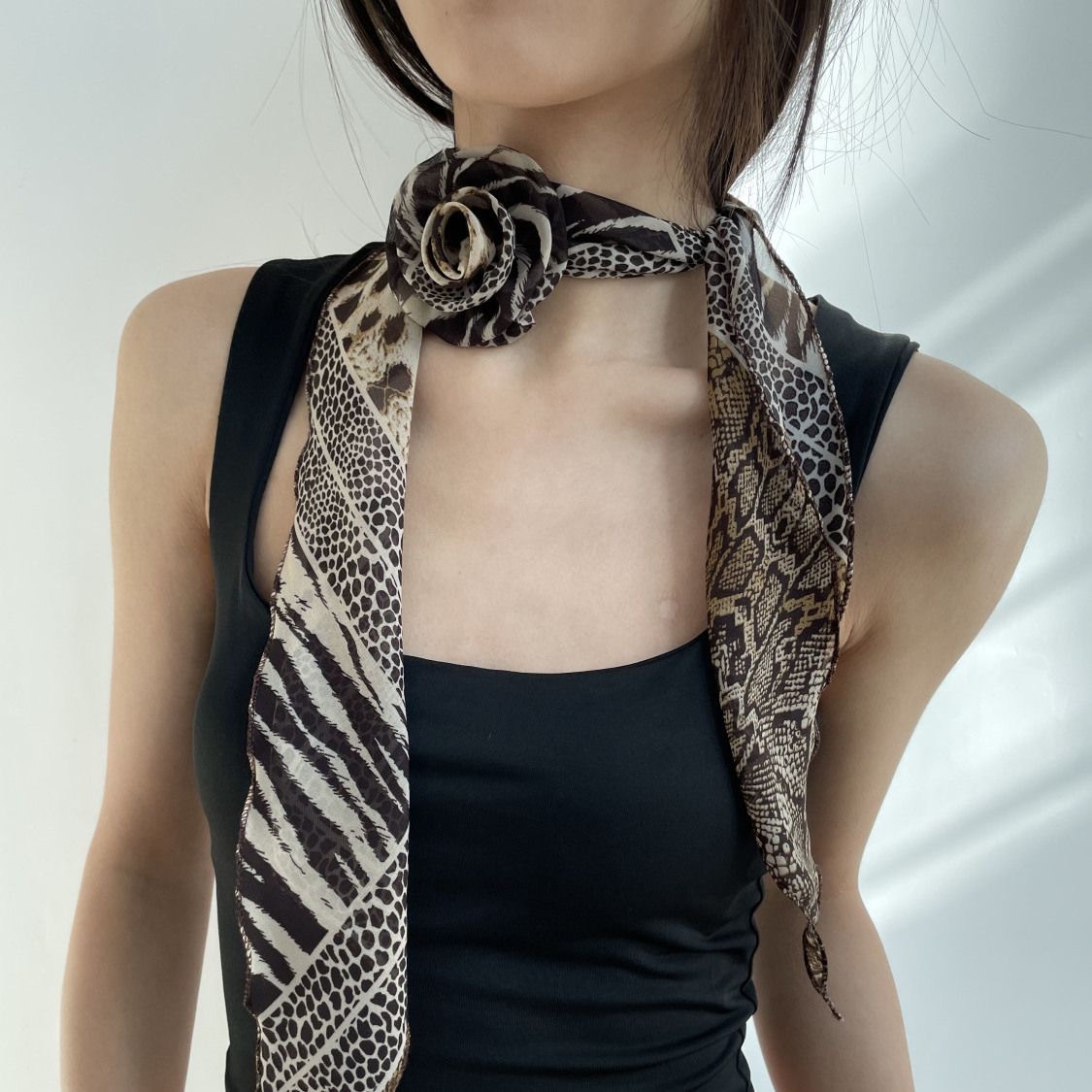 다크 브라운 2025 Poll Dot 실크 스카프 인쇄 고급 목 여성의 새로운 스타일 머리띠 긴 스카프스토어 가기