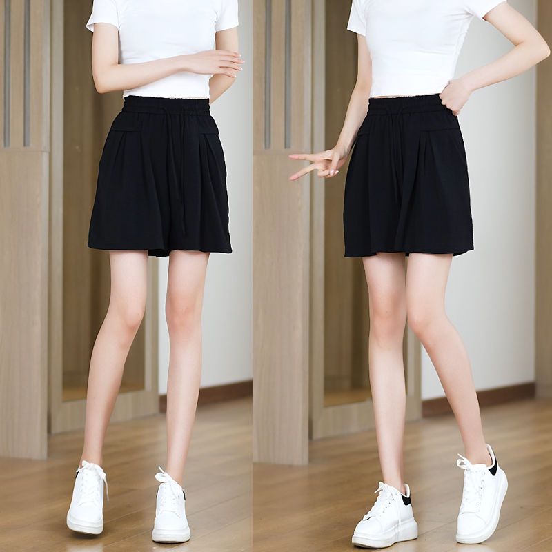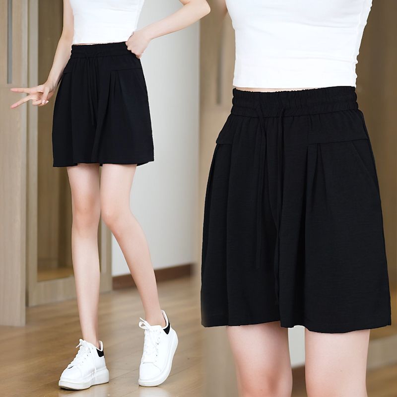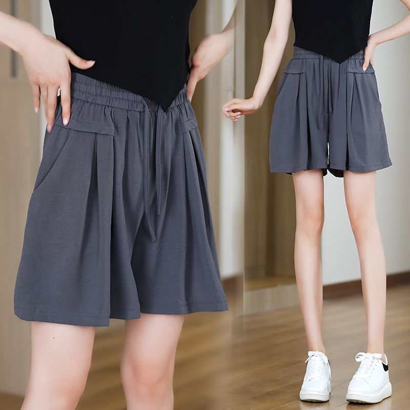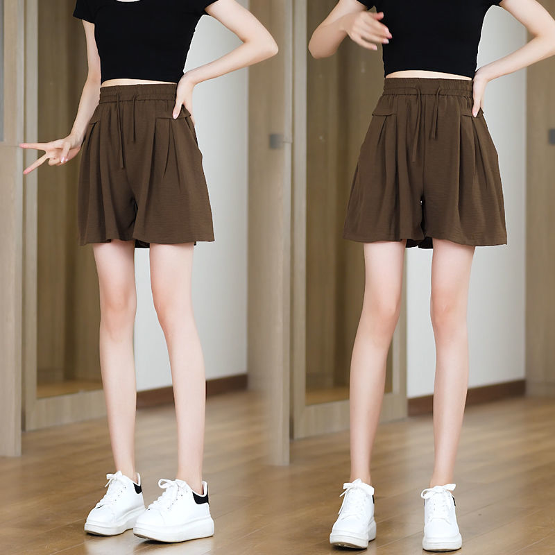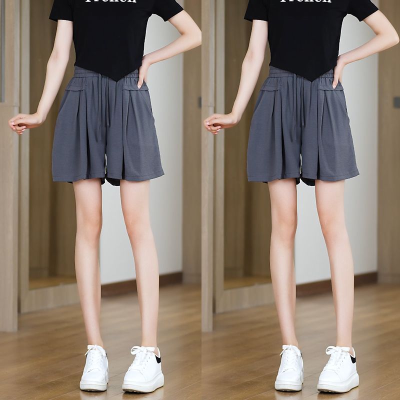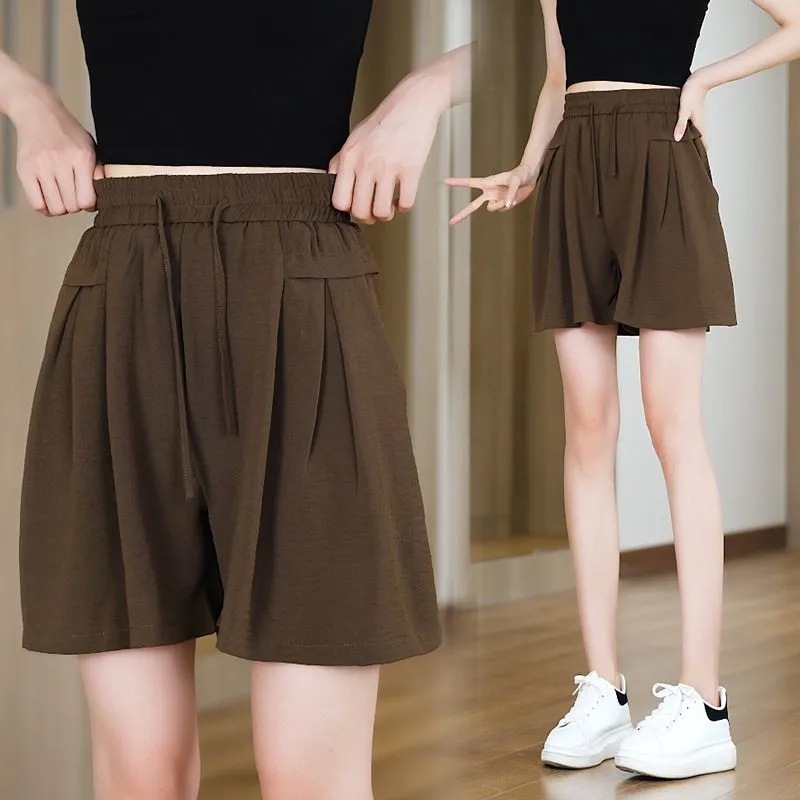 재고 국경 반바지 여성 여름 새로운 2025 바지 아이스 실크 통기성 높은 허리 슬리밍 넓은 다리 슬림 바지 얇은 캐주얼스토어 가기