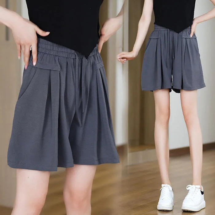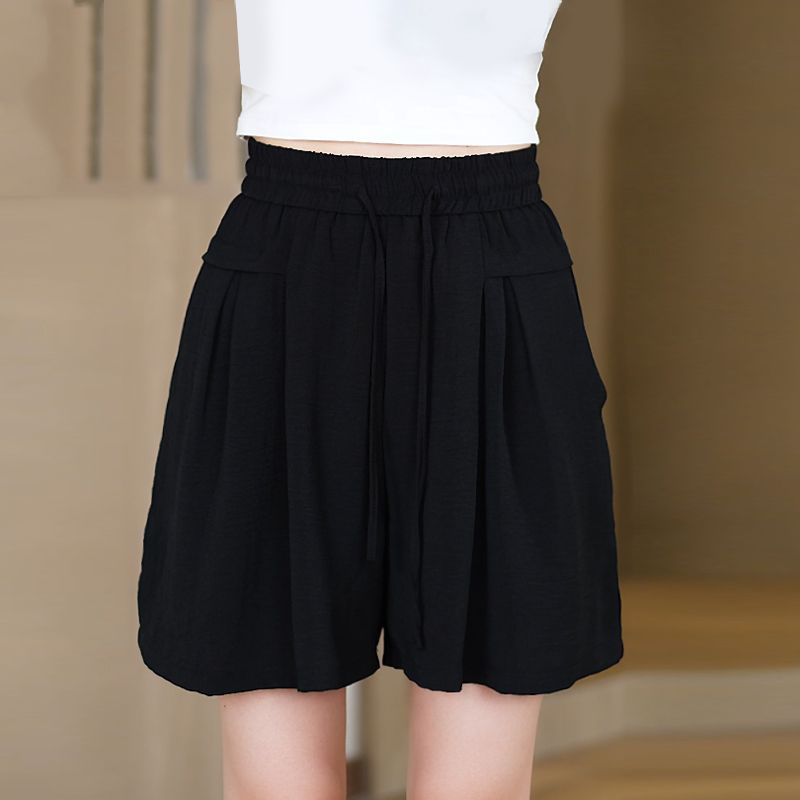 재고 국경 반바지 여성 여름 새로운 2025 바지 아이스 실크 통기성 높은 허리 슬리밍 넓은 다리 슬림 바지 얇은 캐주얼