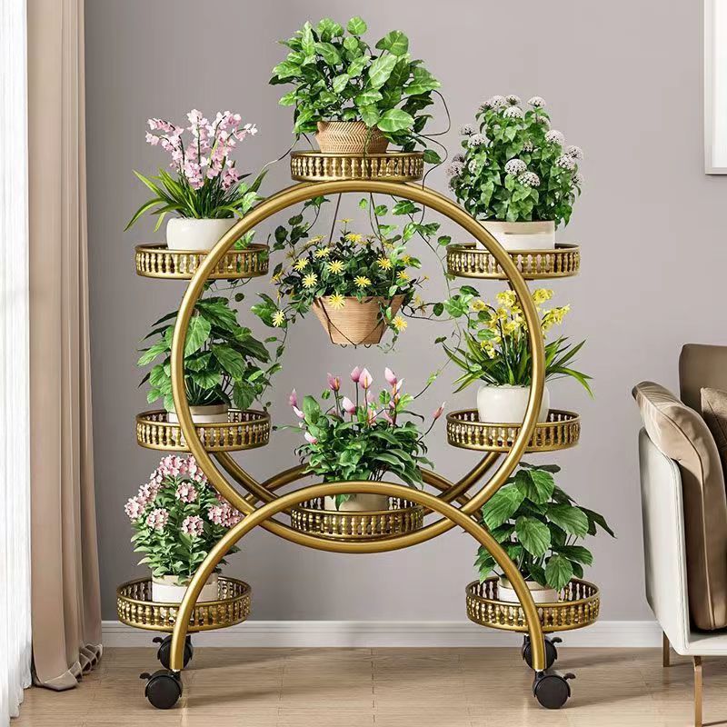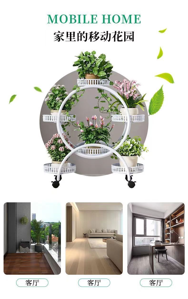 꽃 선반 거실 바닥에 서있는 움직일 수있는 녹색 꽃 냄비 랙 바퀴가 철공 다층 발코니 꽃 랙 가정용 바닥