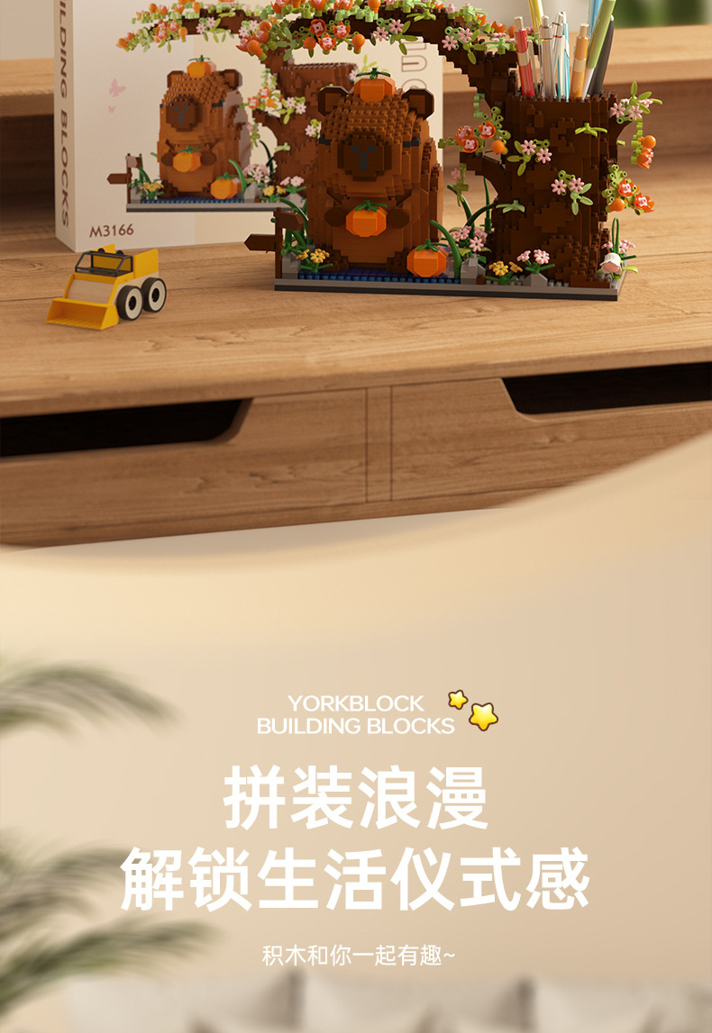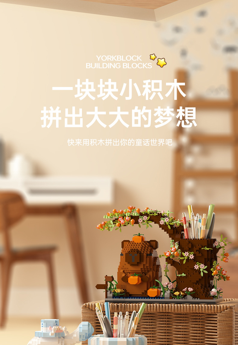 크로스보더 카피 카피바라 미세 입자 창의적인 펜 홀더 조립 블록 발렌타인데이 선물 장식품 도매스토어 가기