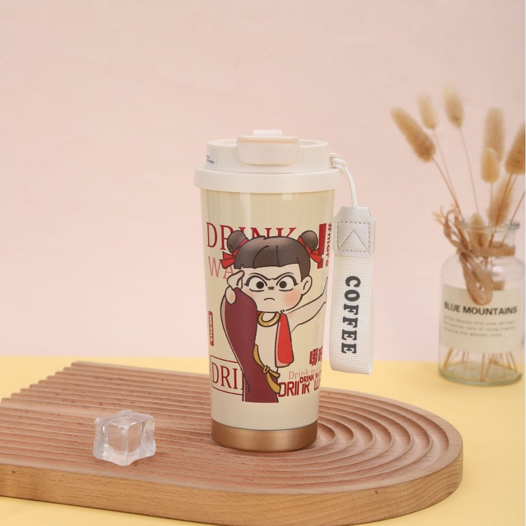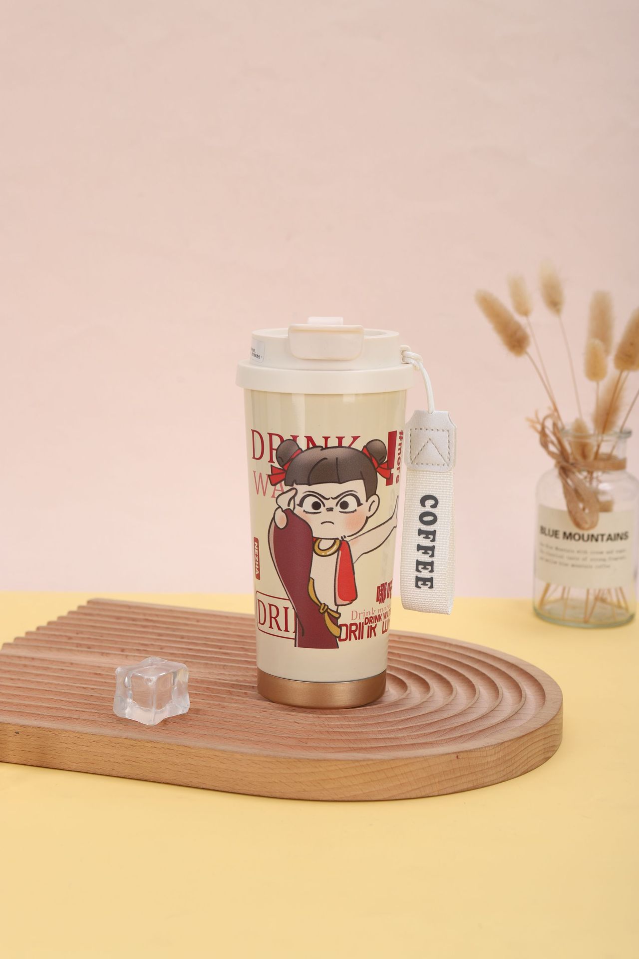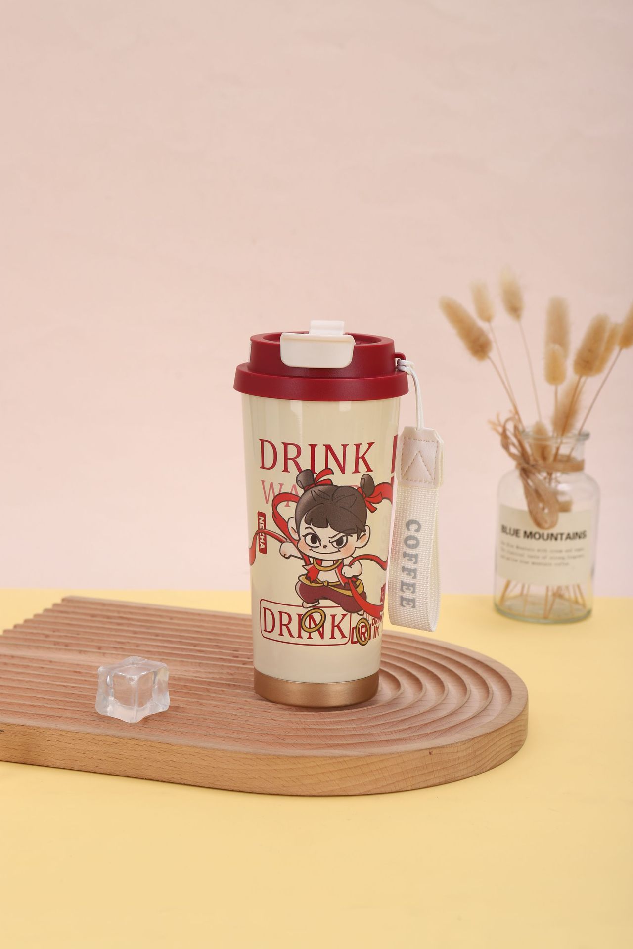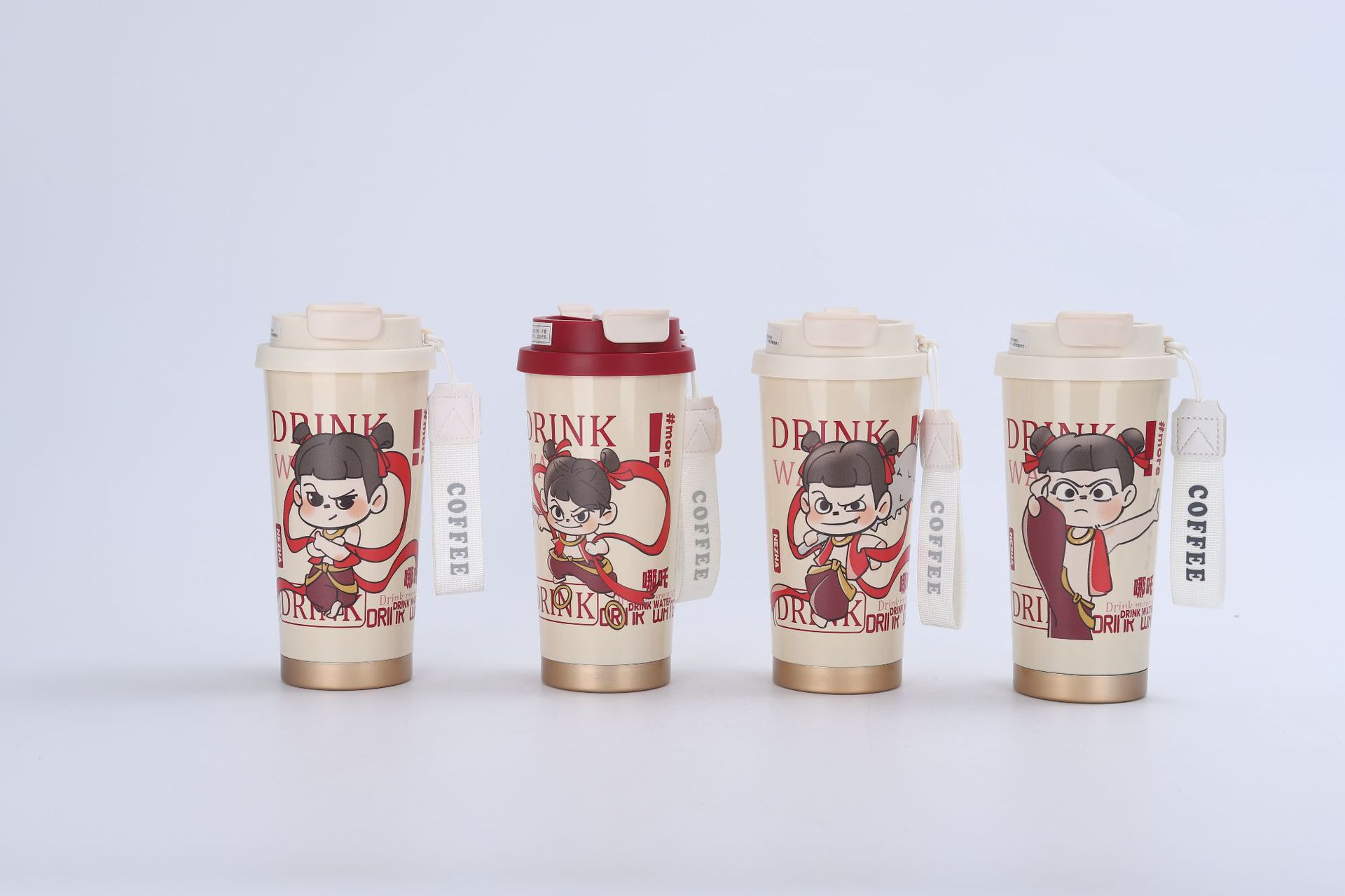 국경 간 Nezha 물 컵 316 스테인레스 스틸 보온병 컵 높은 색상 가치 만화 더블 마시는 밀짚 커피 컵