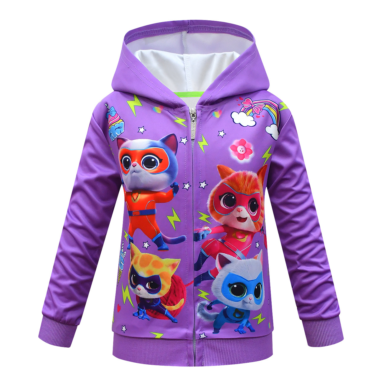 새로운 슈퍼 고양이 슈퍼 키티 올 매치 아동복 소녀 지퍼 후드 풀오버 코트 695