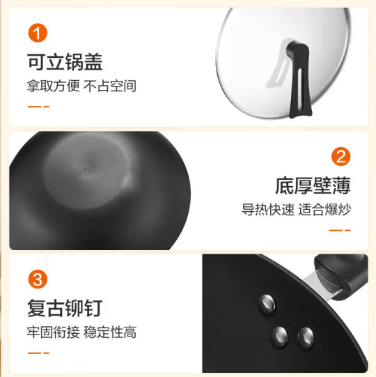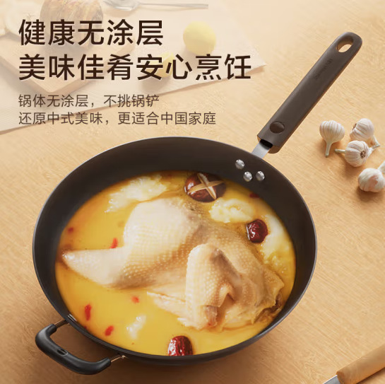 Jiuyang CZH3207 주철 실제 스테인레스 스틸 수직 커버 Wok Raw Iron Wok 가스 스토브 코팅되지 않은 가구