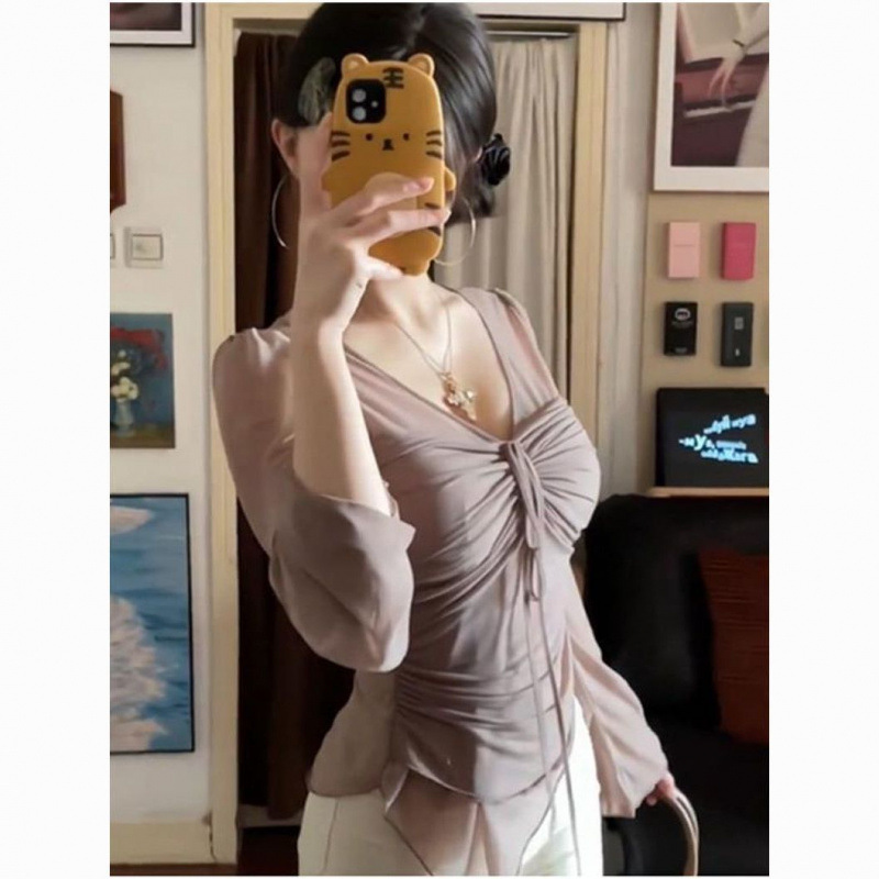순수한 욕망 스타일 플리츠 슬림 핏 타이트 허리 탑 한국 스타일 우아한 칼라 스파이스 걸스 긴팔 셔츠 여성용 봄과 여름 섹시한 탑스토어 가기