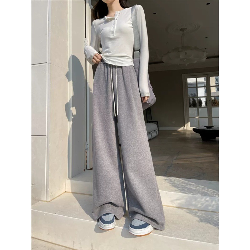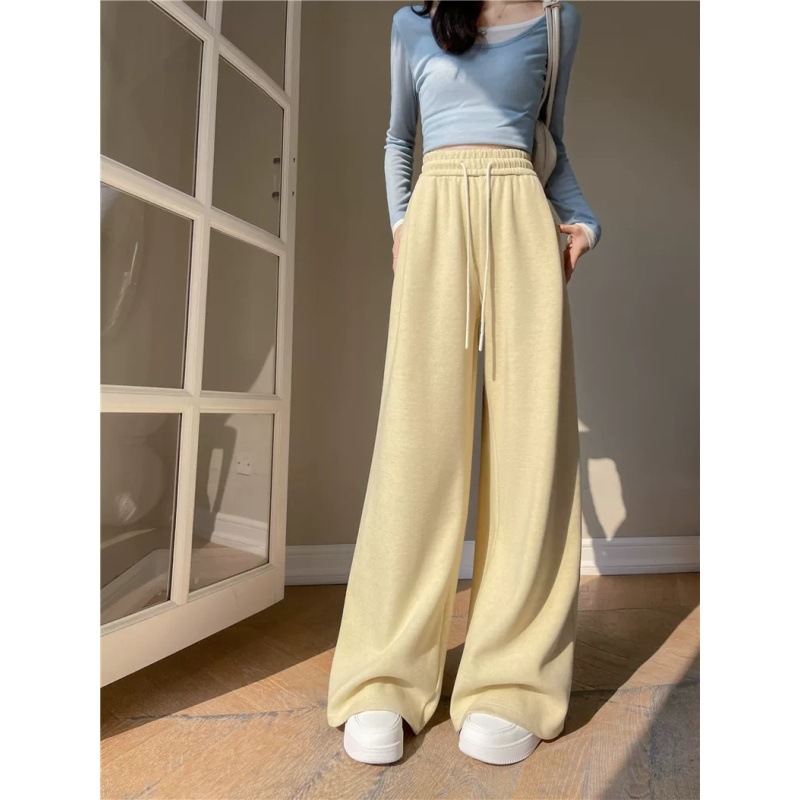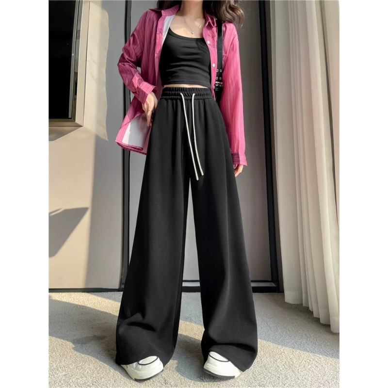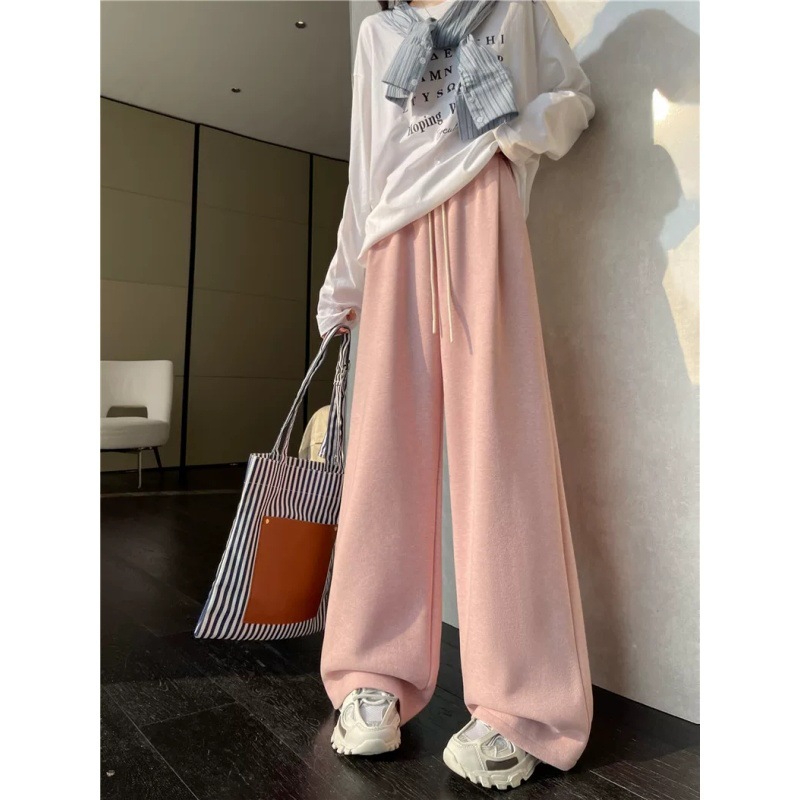 살을 가리는 슬리밍 한국 스타일 봄 게으른 느슨한 허리 직선 바지 여성 느슨한 2025 와이드 다리 바지