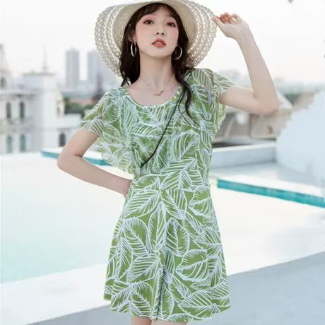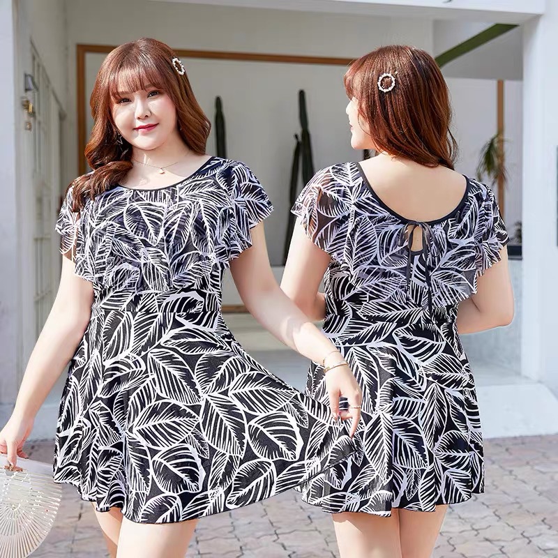 빅사이즈 여성용 원피스 수영복 플러스 사이즈 보수적인 온천용 엄마 수영복 하이웨이스트 원피스