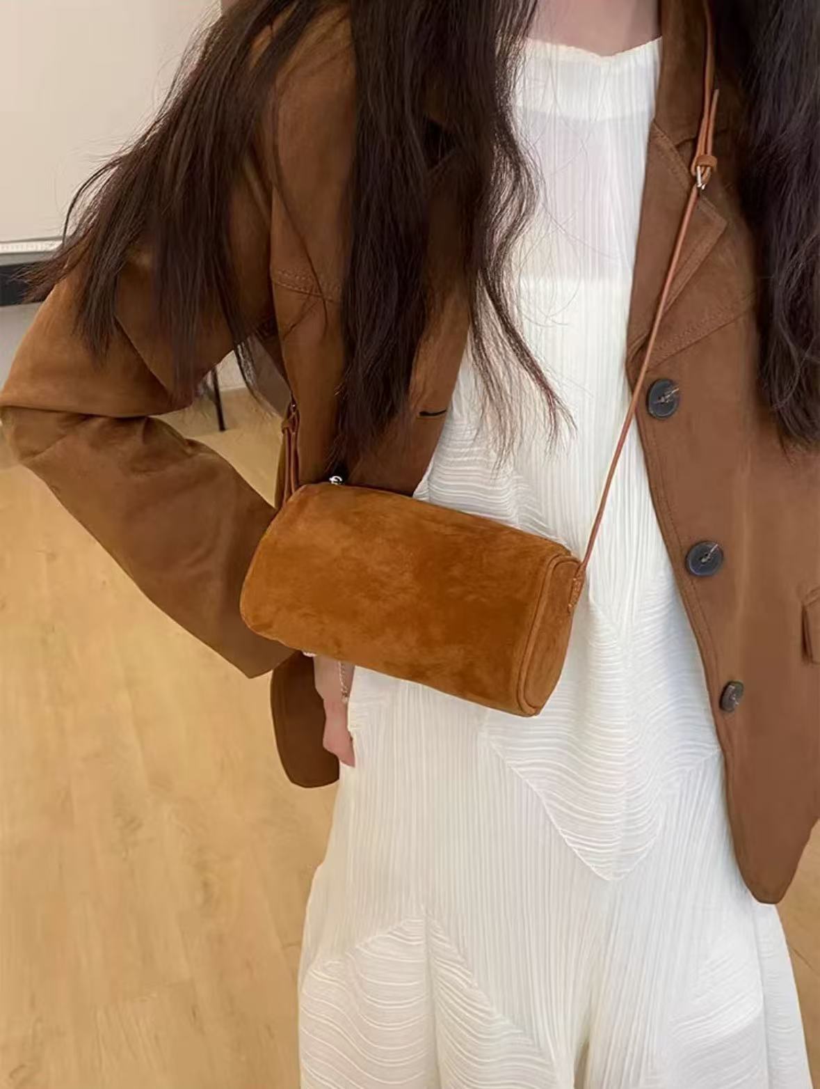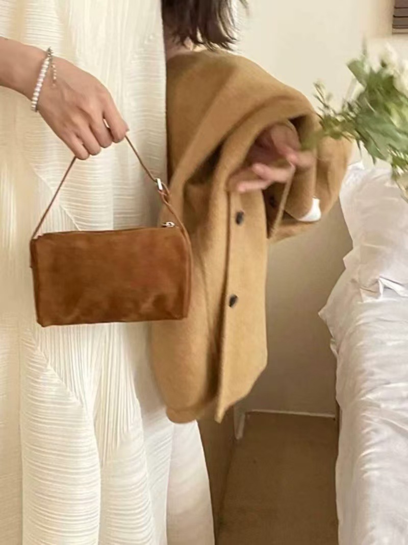 니치 스웨이드 연필 가방 여성의 2025 새로운 가을과 겨울 빨간 손 가방 고급 어깨 크로스 바디 백스토어 가기