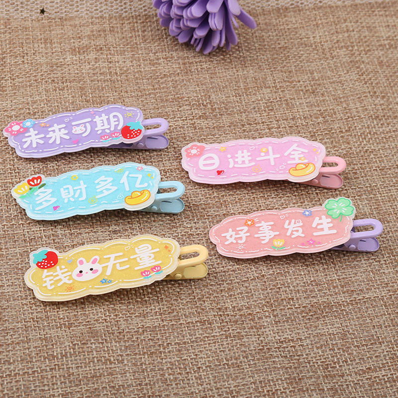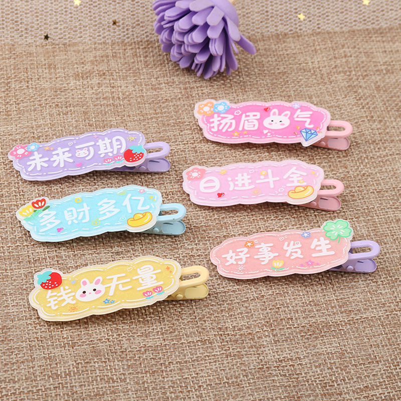 재미있고 귀여운 텍스트 머리핀, 앞머리 집게핀, 소녀 감성 헤어핀, 개성 있는 창의적인 덕빌핀 헤어 액세서리