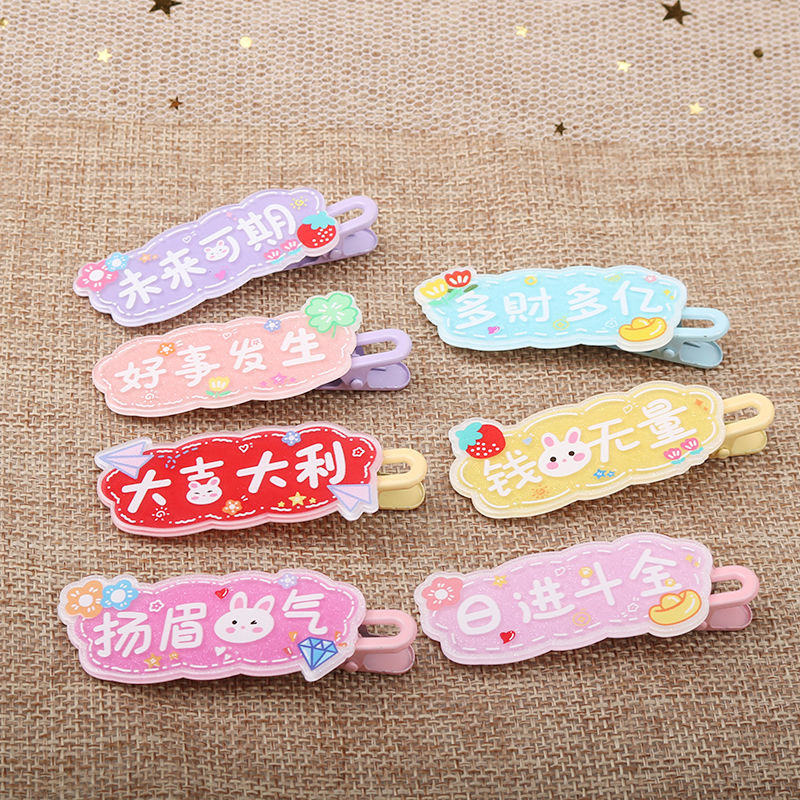 재미있고 귀여운 텍스트 머리핀, 앞머리 집게핀, 소녀 감성 헤어핀, 개성 있는 창의적인 덕빌핀 헤어 액세서리스토어 가기