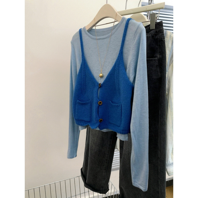 가을 완벽한 착용 세트 여성의 2025 새로운 간단한 슬링 패션 탑 루즈 청바지 달콤한 3 피스 세트스토어 가기