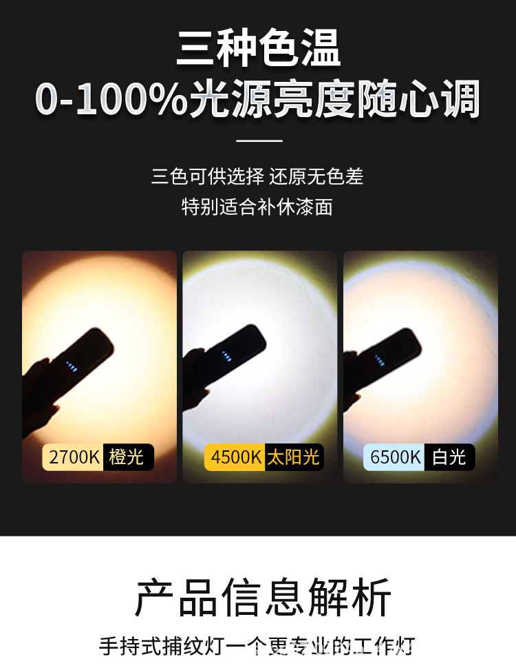높은 컬러 렌더링 가치 곡물 잡기 램프 3 색 광원 작업 램프 자동 수리 유지 보수 램프 긴 내구성 휴대용 충전 자기 매력 le스토어 가기