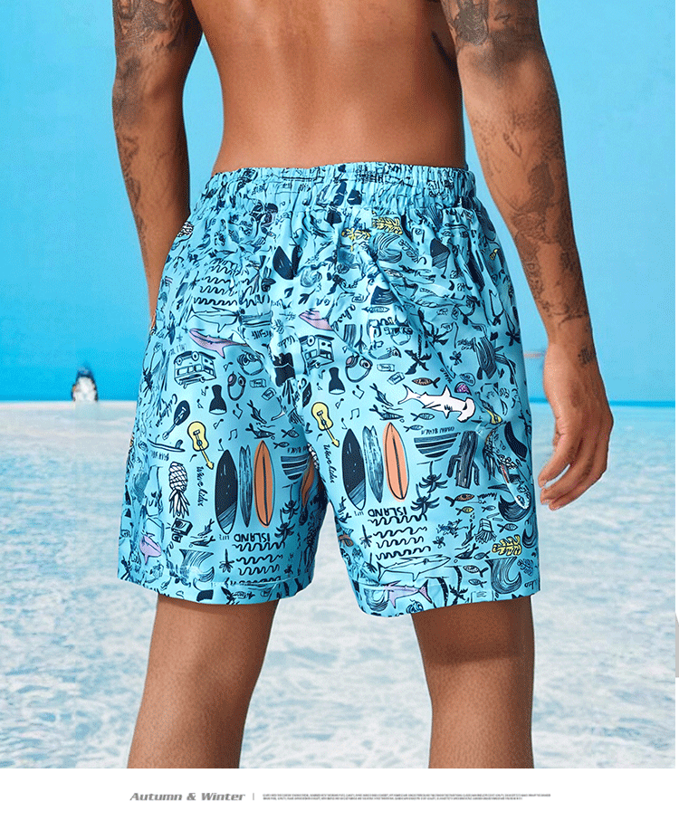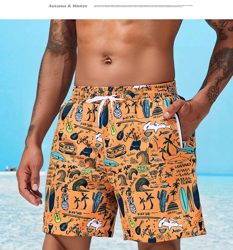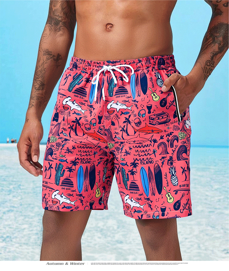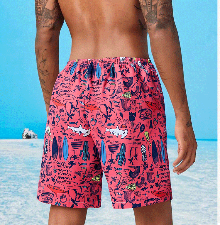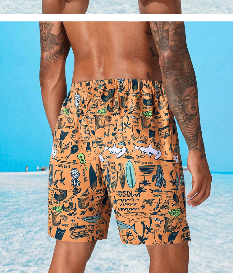 국경 간 여름 남성 해변 바지 창조적 인 열대 우림 인쇄 캐주얼 바지 느슨한 여행 휴가 외부 착용 반바지