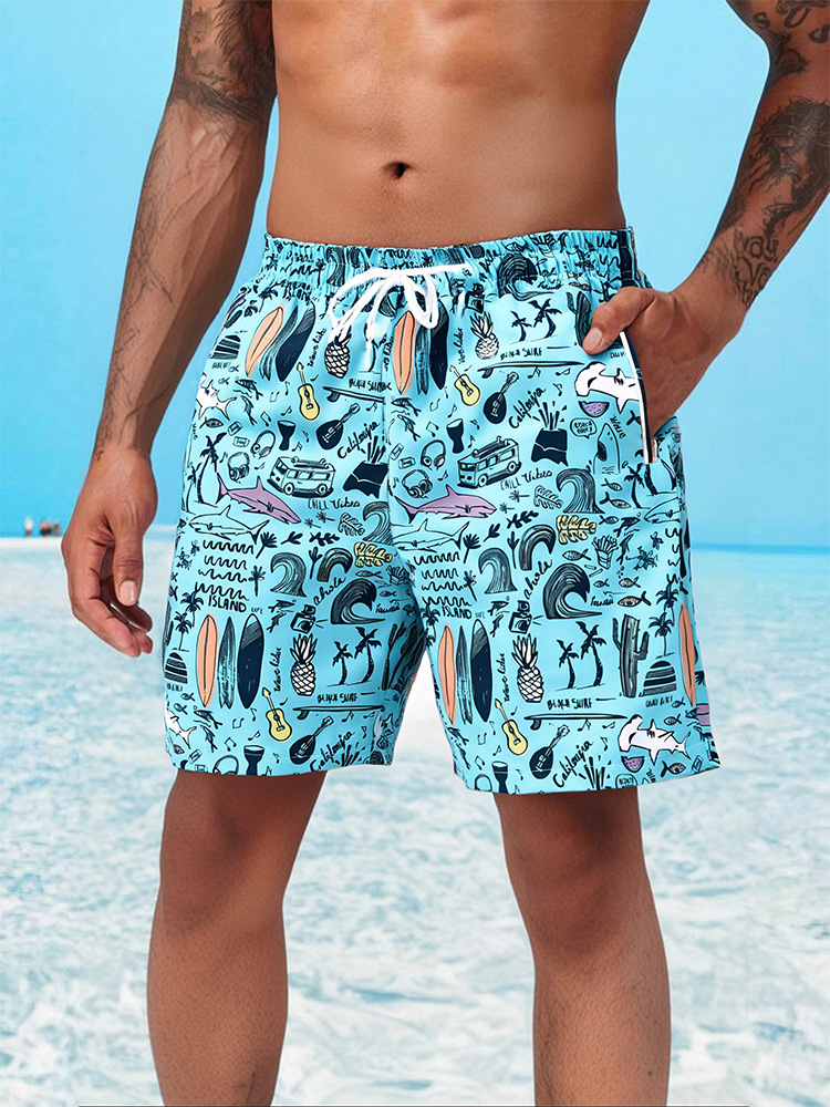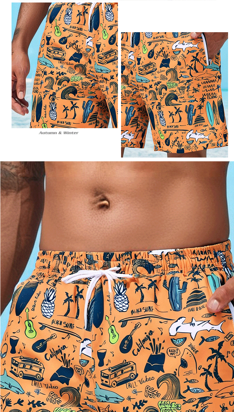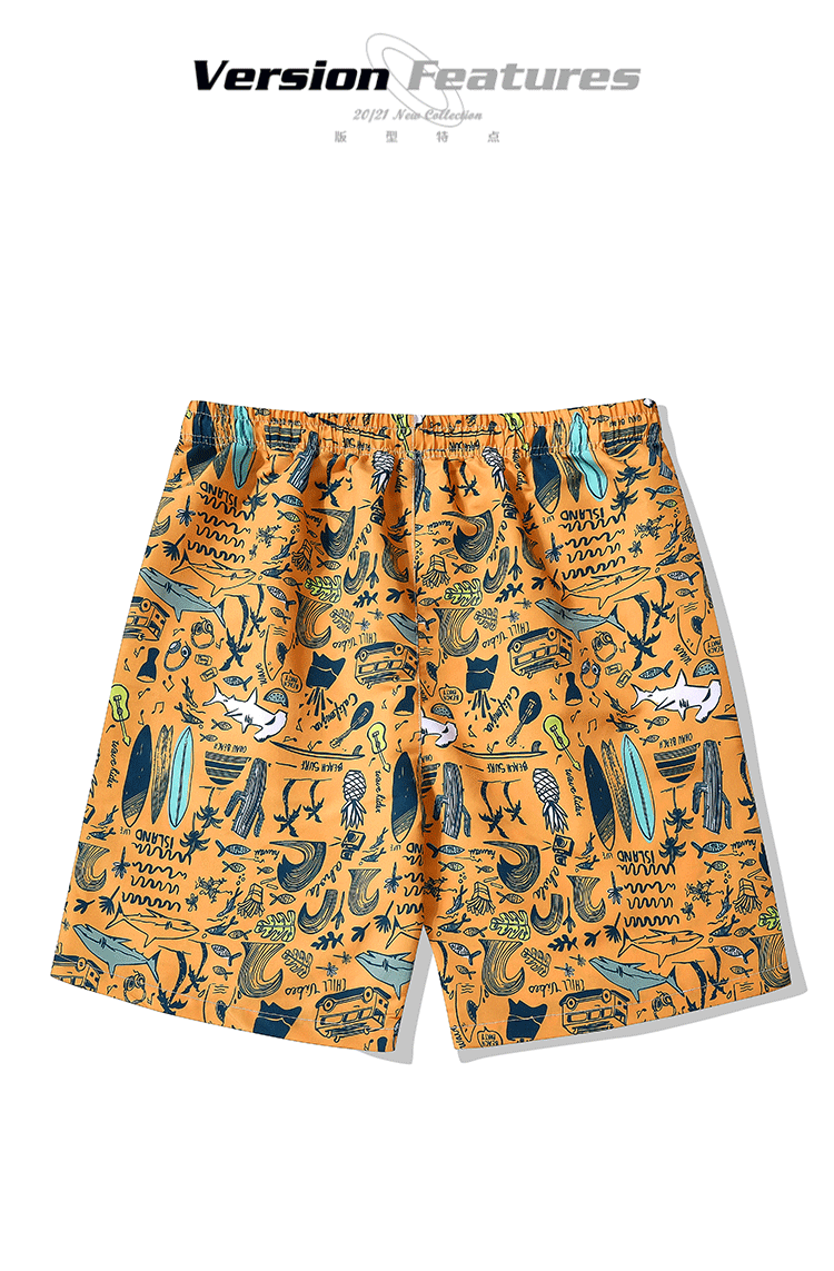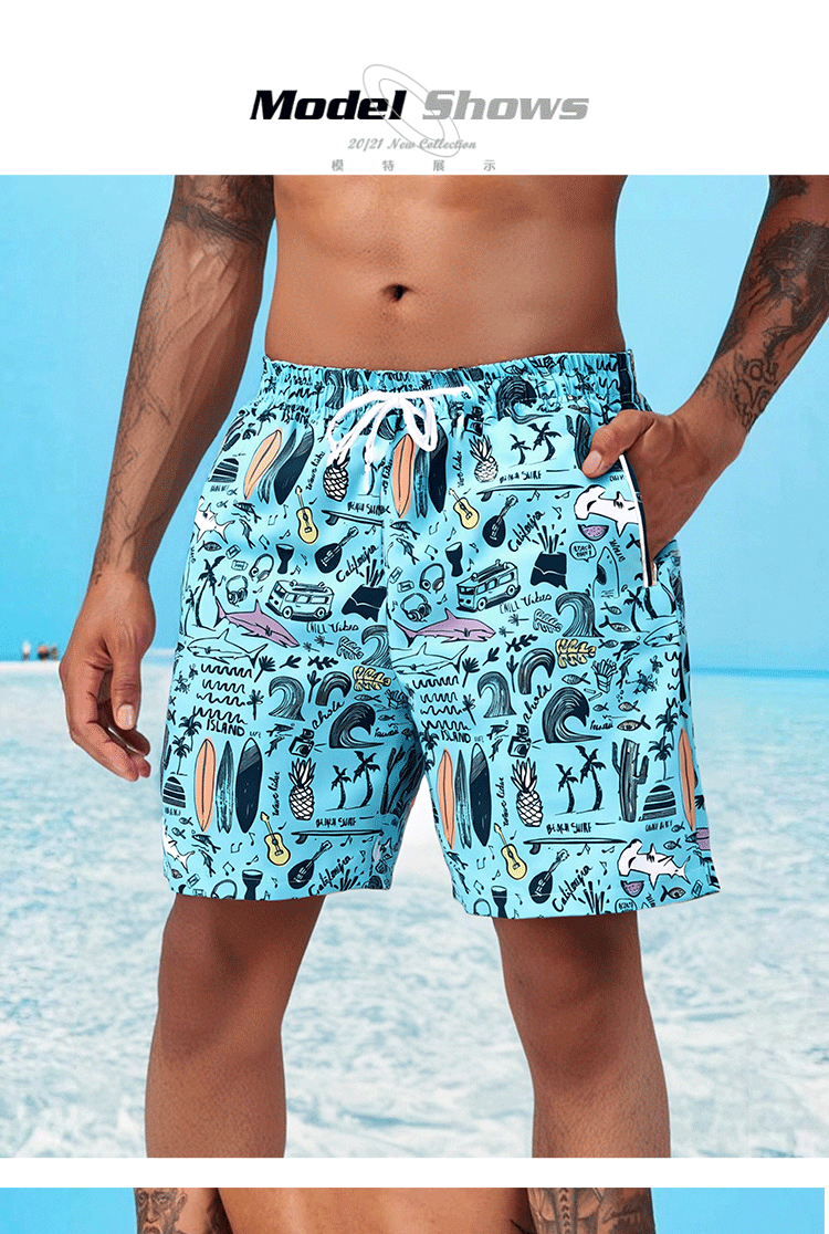 국경 간 여름 남성 해변 바지 창조적 인 열대 우림 인쇄 캐주얼 바지 느슨한 여행 휴가 외부 착용 반바지