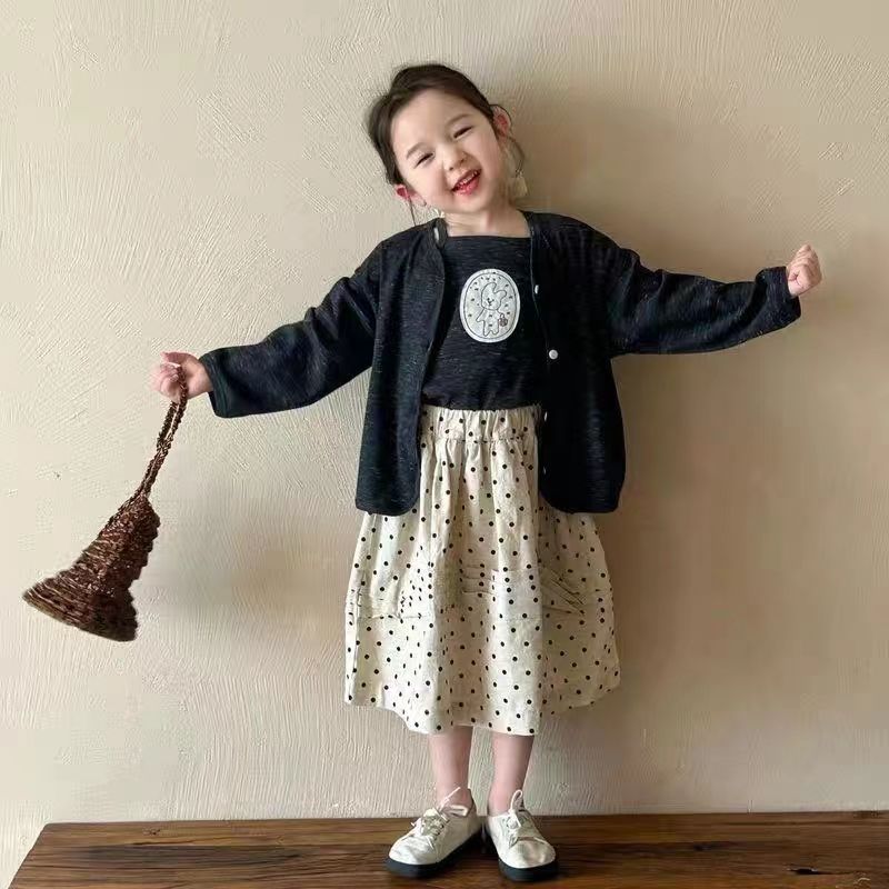 소녀 한국식 세트 봄 원피스 서양식 어린이 귀여운 서양식 슬링 카디건 자켓 스커트 3 종 세트스토어 가기