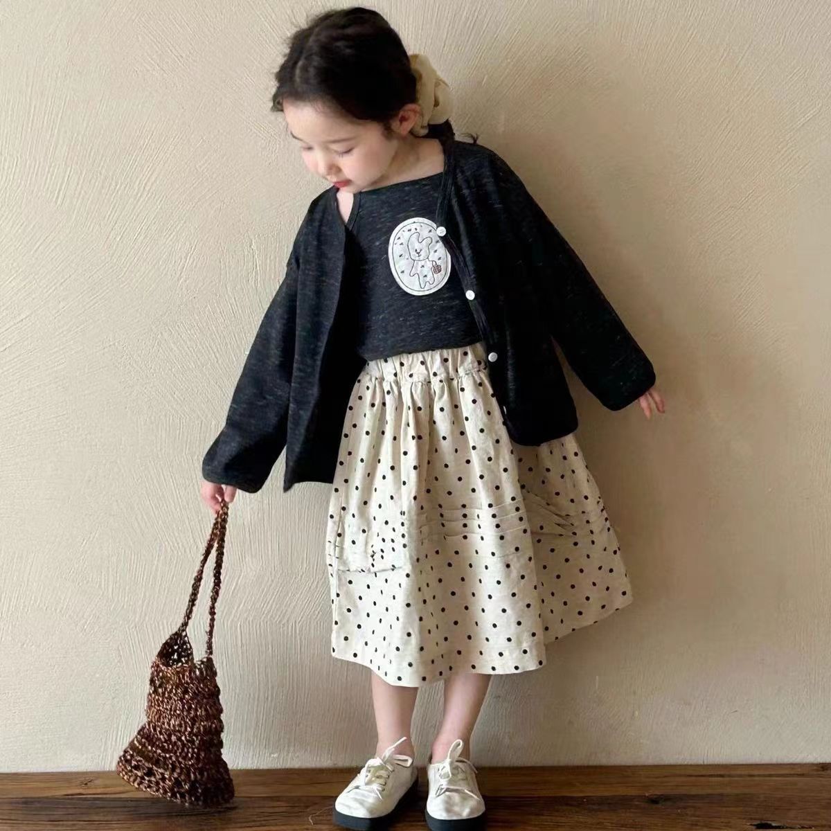 • 가디건+조끼+땡땡이 스커트 3종세트