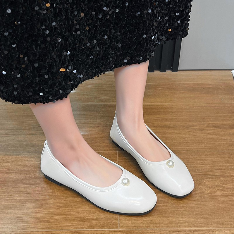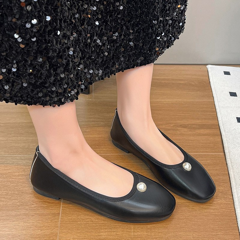 2025 봄 새로운 대외 무역 패션 두두 통근 플랫 신발 여성 한국식 젠틀 프렌치 라운드 발가락 얕은 여성 신발스토어 가기