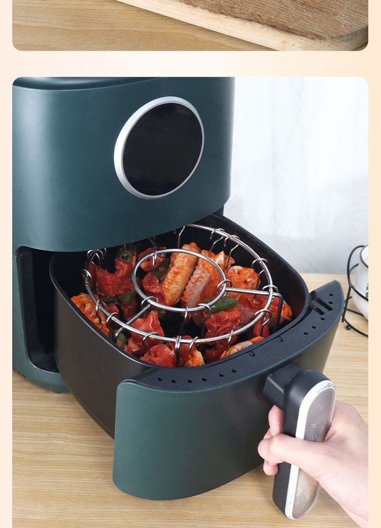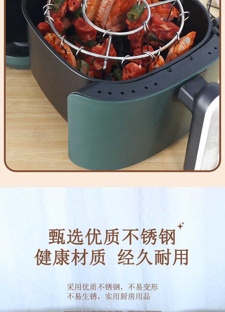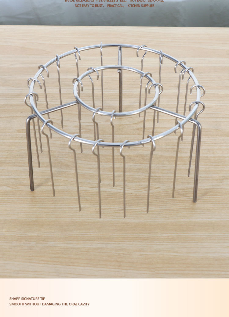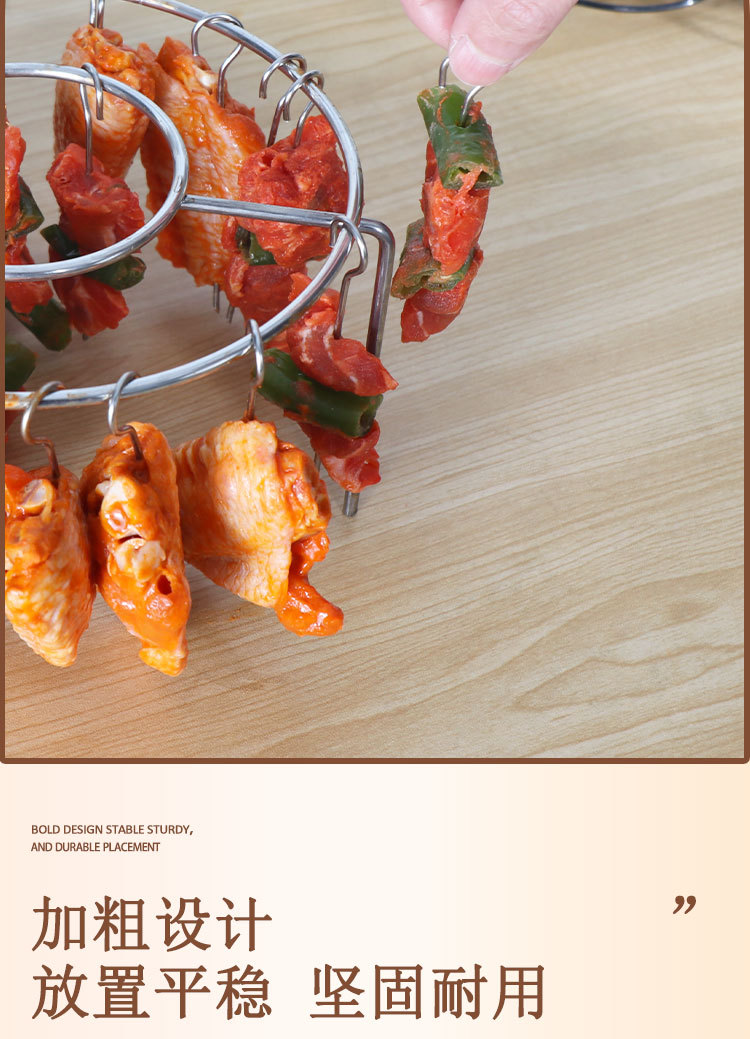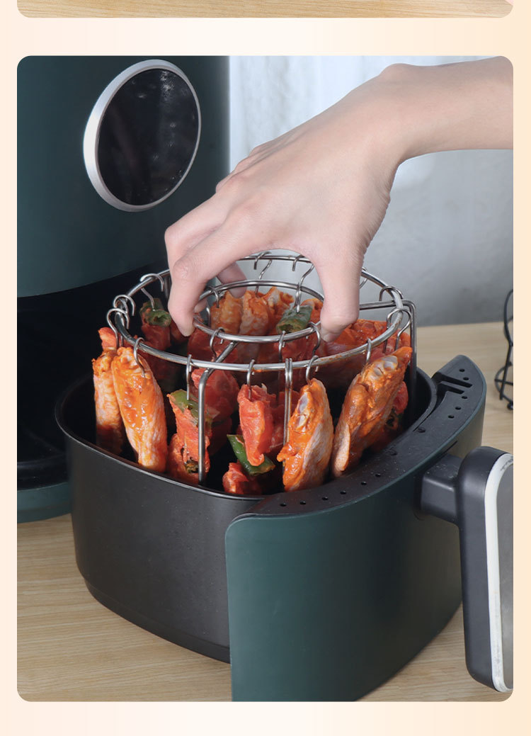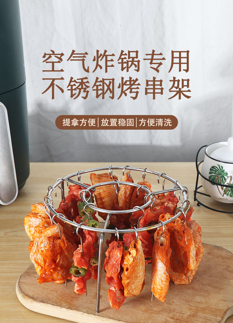 에어 프라이어 바베큐 랙 라운드 교수형 꼬치 랙 가정용 스테인레스 스틸 수직 고기 꼬치 랙 그릴 주방 실내스토어 가기