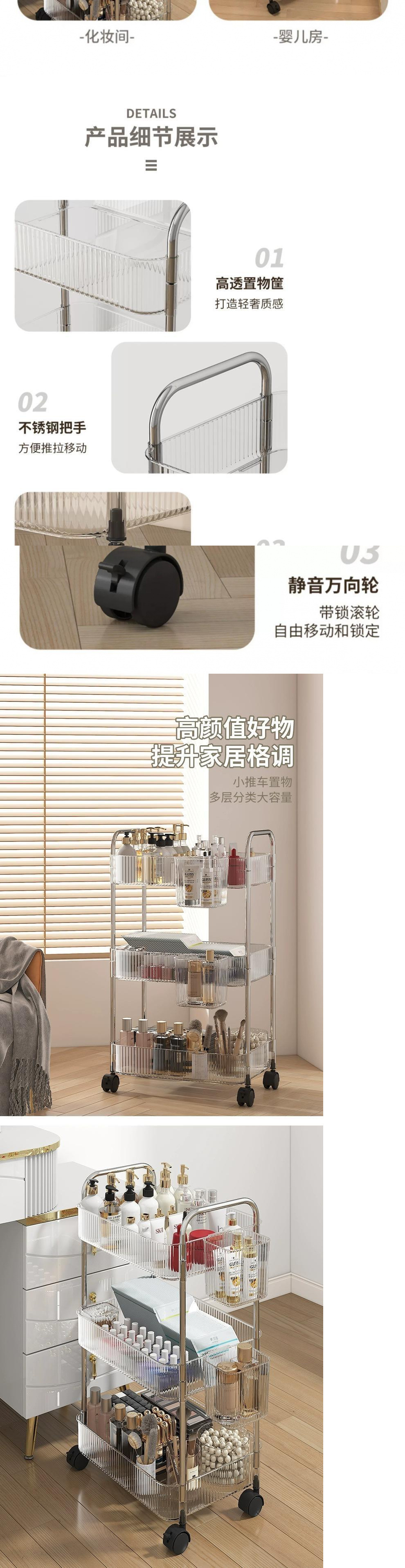 투명한 아크릴 카트 보관 랙 침대 옆 간식 침실 바닥 모바일 다층 화장품 보관 랙스토어 가기