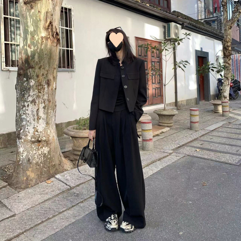 봄 2025 새로운 가을 짧은 서양식 세트 세트 여성 디자인 센스 작은 재킷 세트 바지 투피스 세트스토어 가기