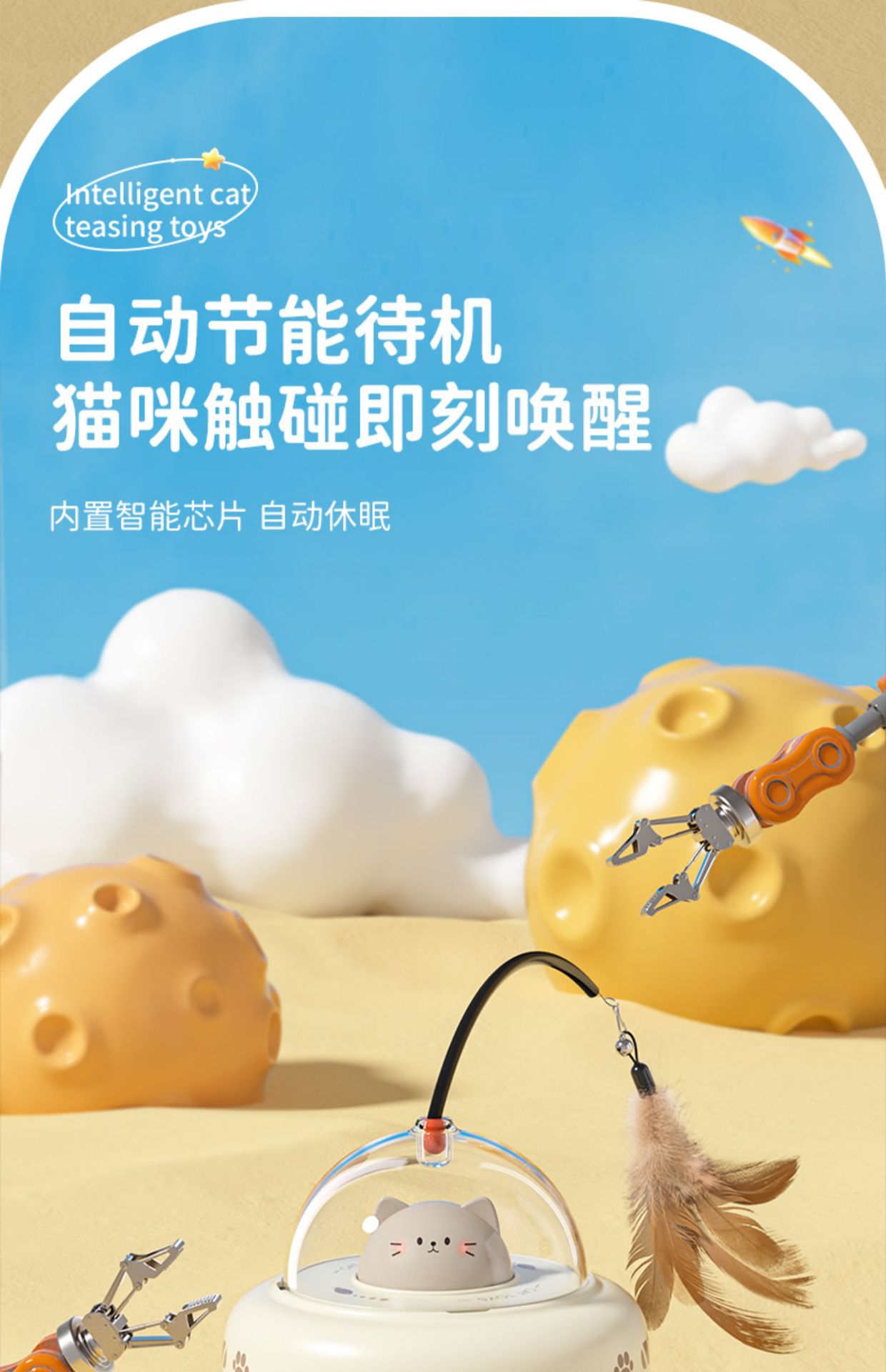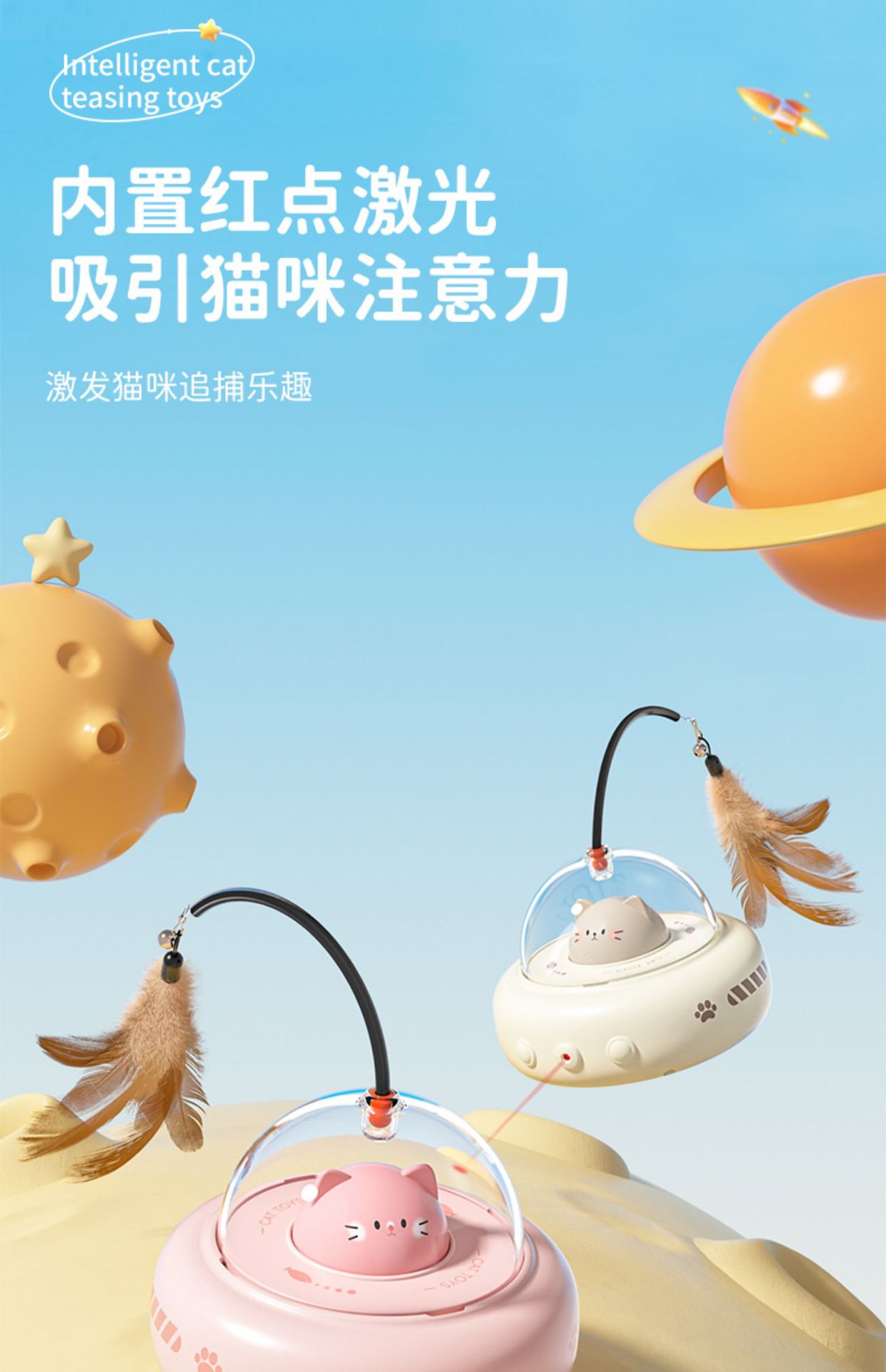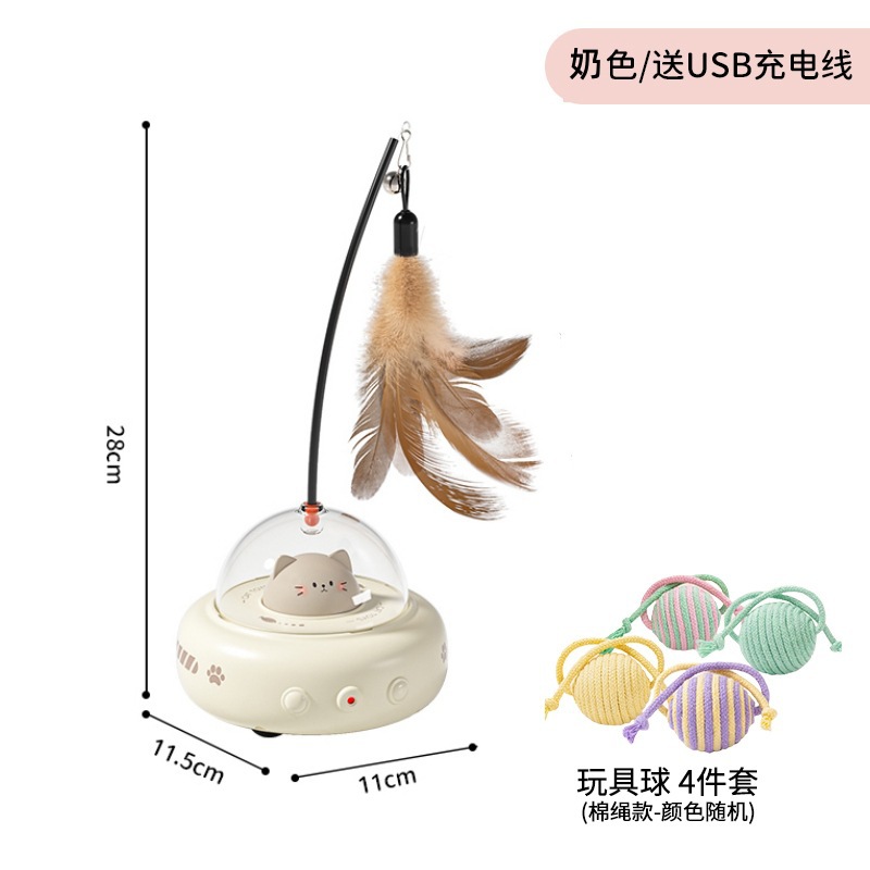 • [밀크커피컬러] 지능형 전동 레이저 고양이 놀리는봉 + 도파민 장난감볼 4종세트