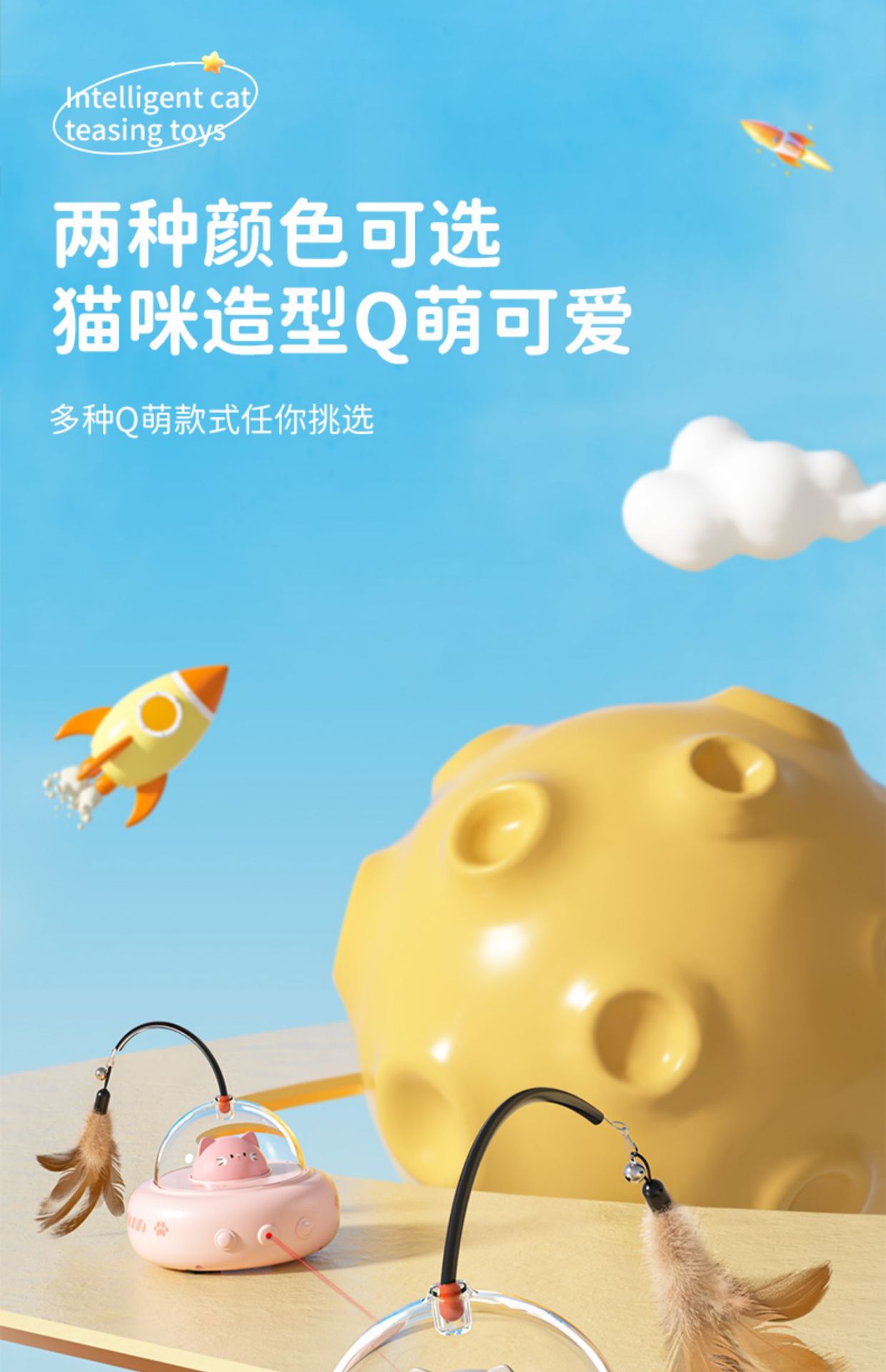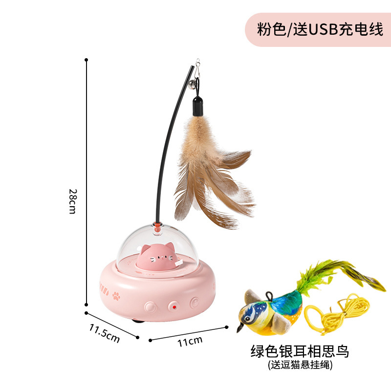 • [사쿠라 핑크] 지능형 전기 레이저 고양이 놀리는 지팡이 + 녹색 흰목이 잉꼬