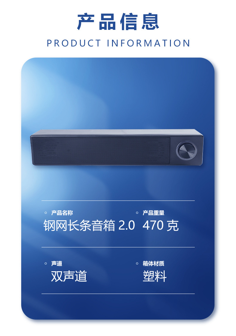 롱 스트립 컴퓨터 오디오 유선 데스크탑 홈 노트북 스테레오 서라운드 서브 우퍼 스틸 메쉬 롱 스트립 스피커