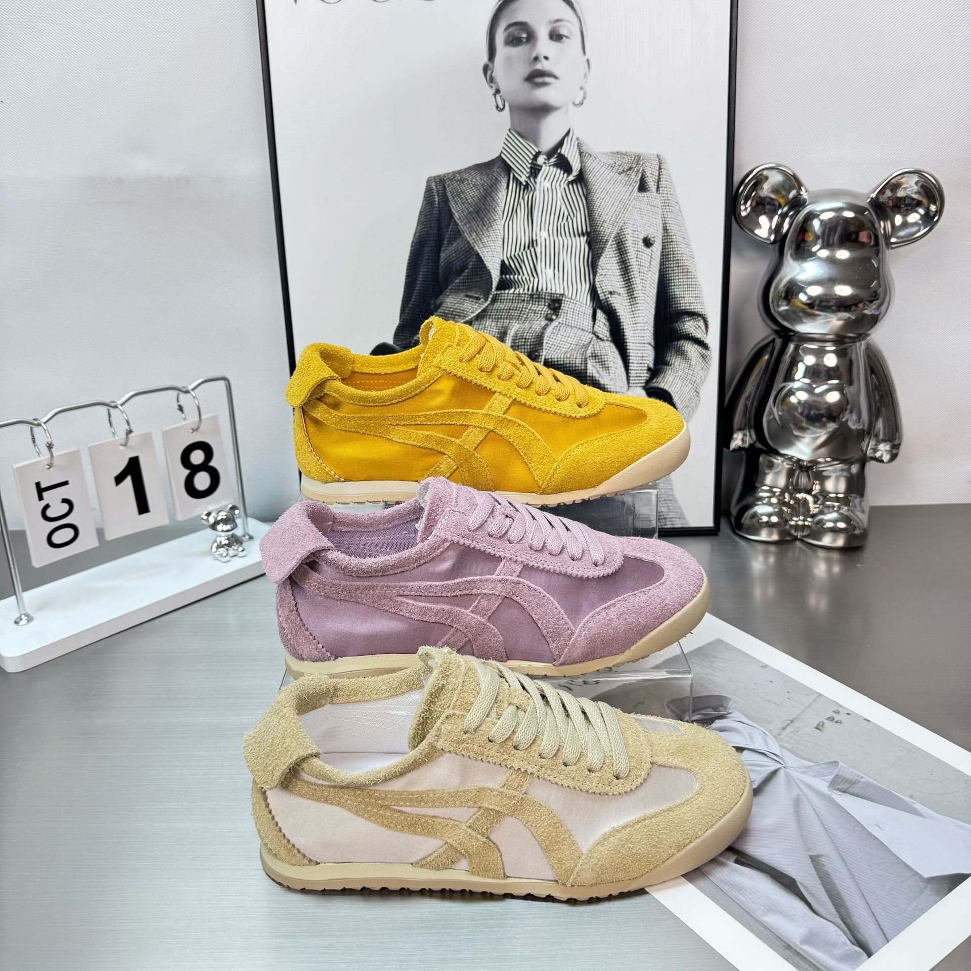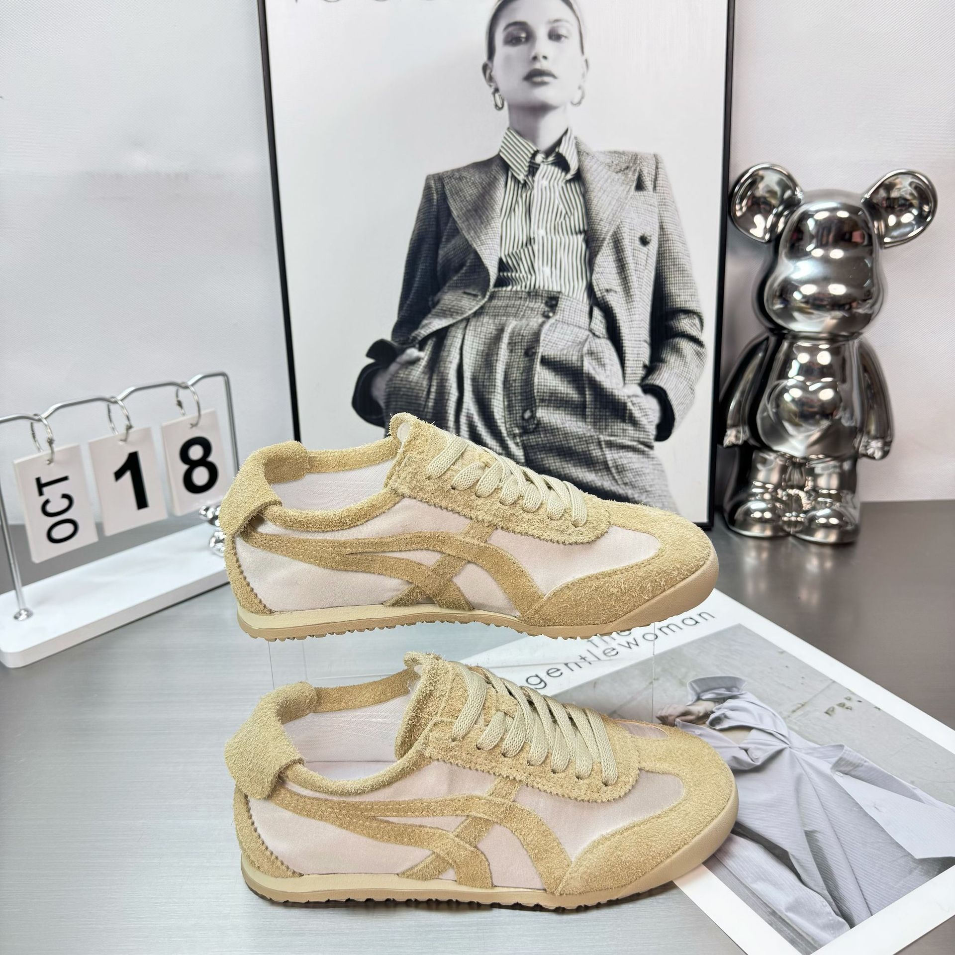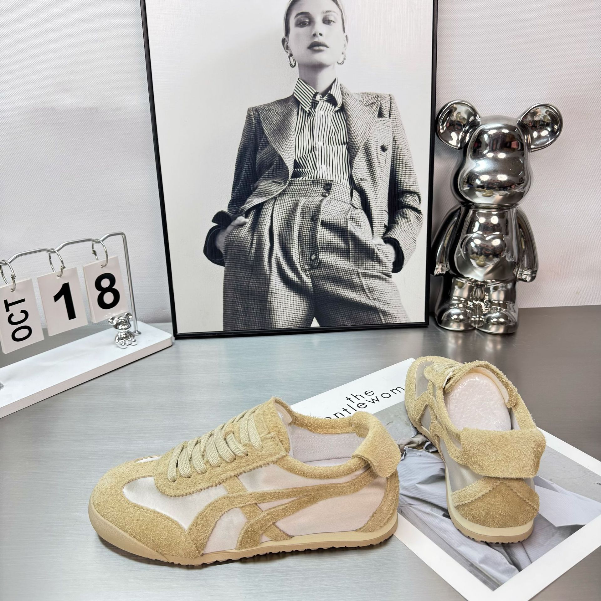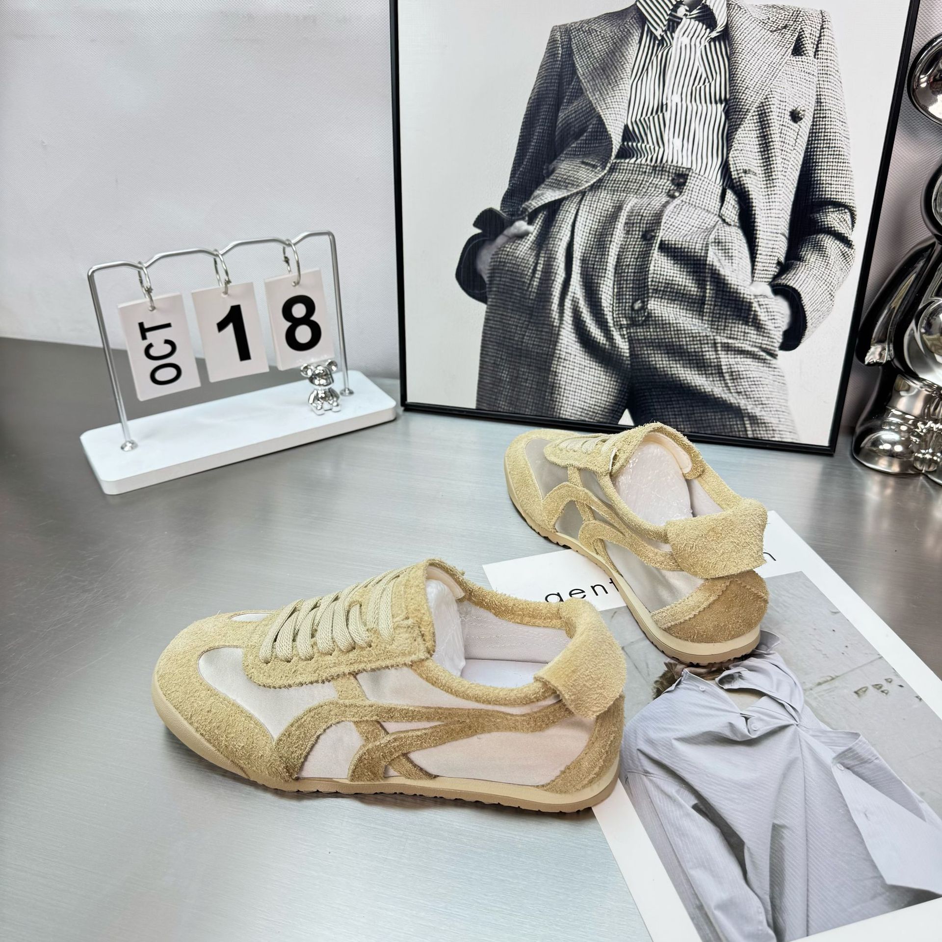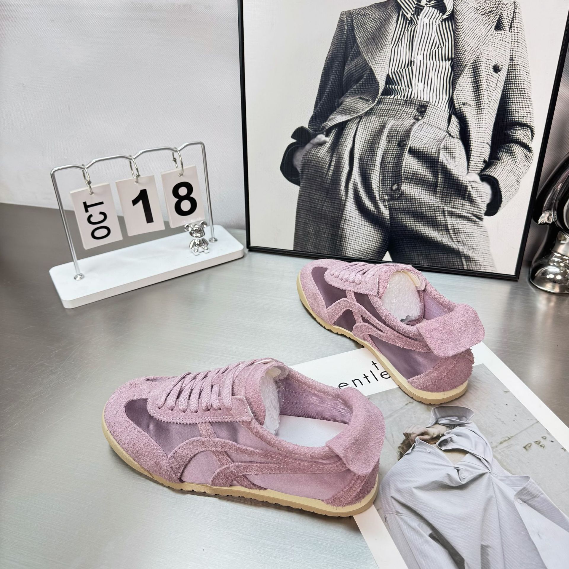 2025 년 봄과 여름 새로운 실크 정품 가죽 유행 색상 매칭 새틴 독일 훈련 신발 여성의 부드러운 밑창 캐주얼 스포츠 포레스트 검프 트렌디 신발스토어 가기
