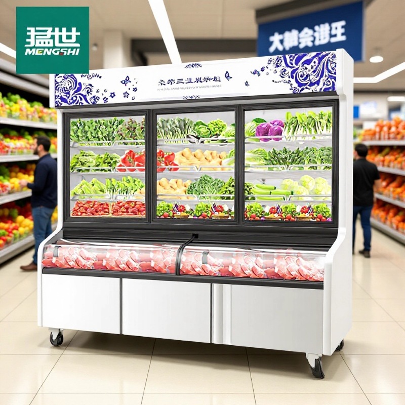 Mengshi Malatang 디스플레이 캐비닛, 상업용 주문 캐비닛, 3단 온도 바베큐 튀김 캐비닛, 냉장 및 냉동 보존 캐비닛, 맞춤형 스프레이스토어 가기