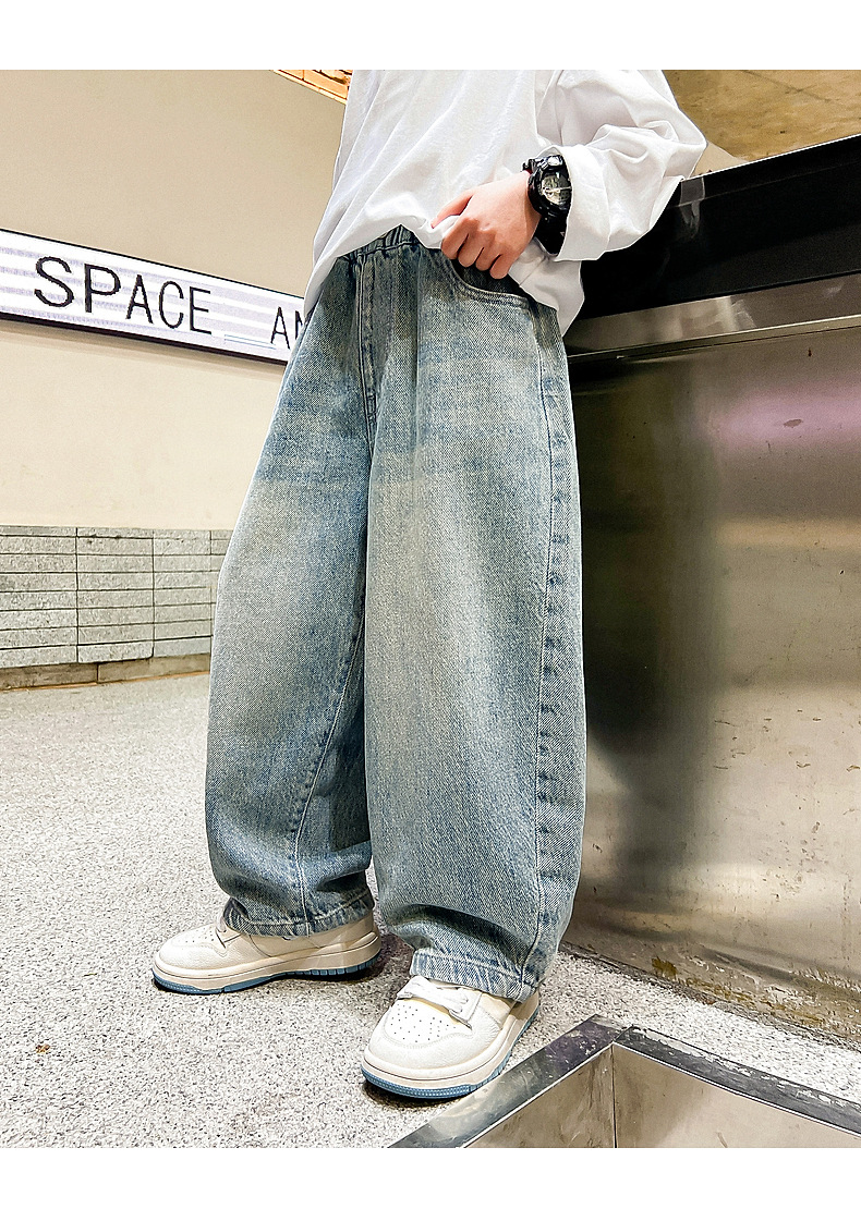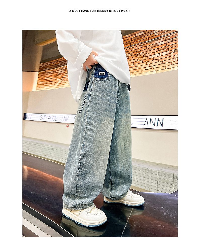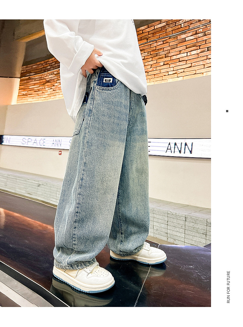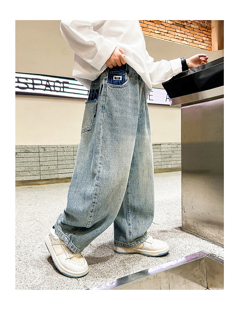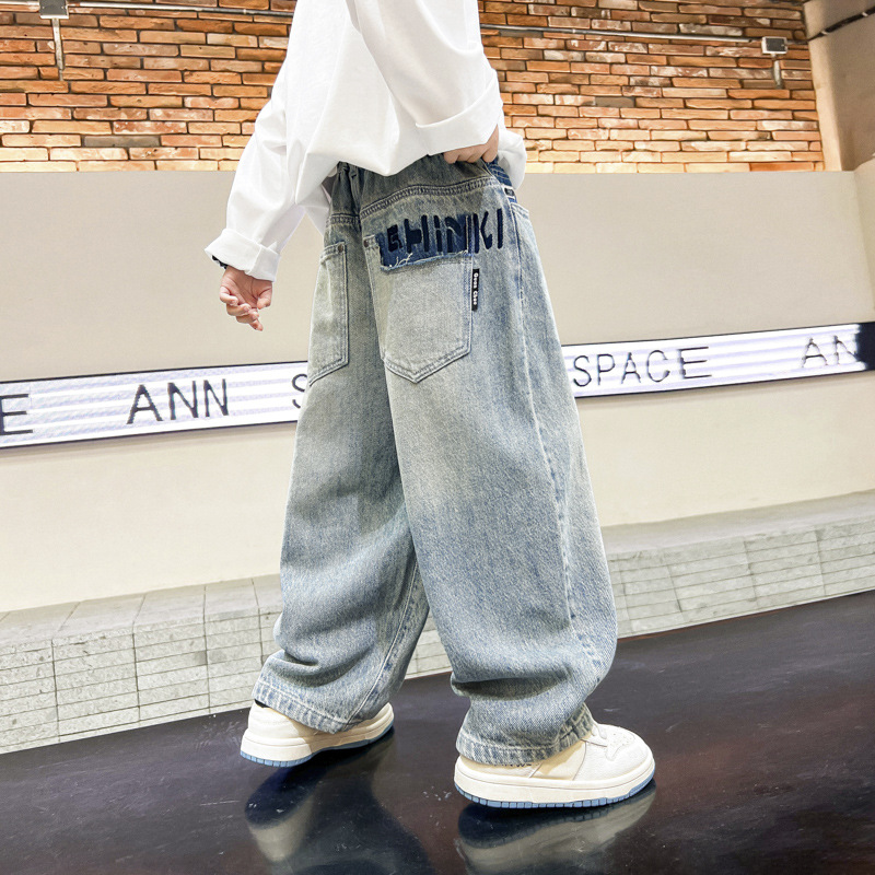 소년 봄, 가을 한국 스트레이트 루즈 청바지 2025 새로운 스타일 어린이 소년 가을 의류 루즈하고 잘 생긴 바지 유행스토어 가기