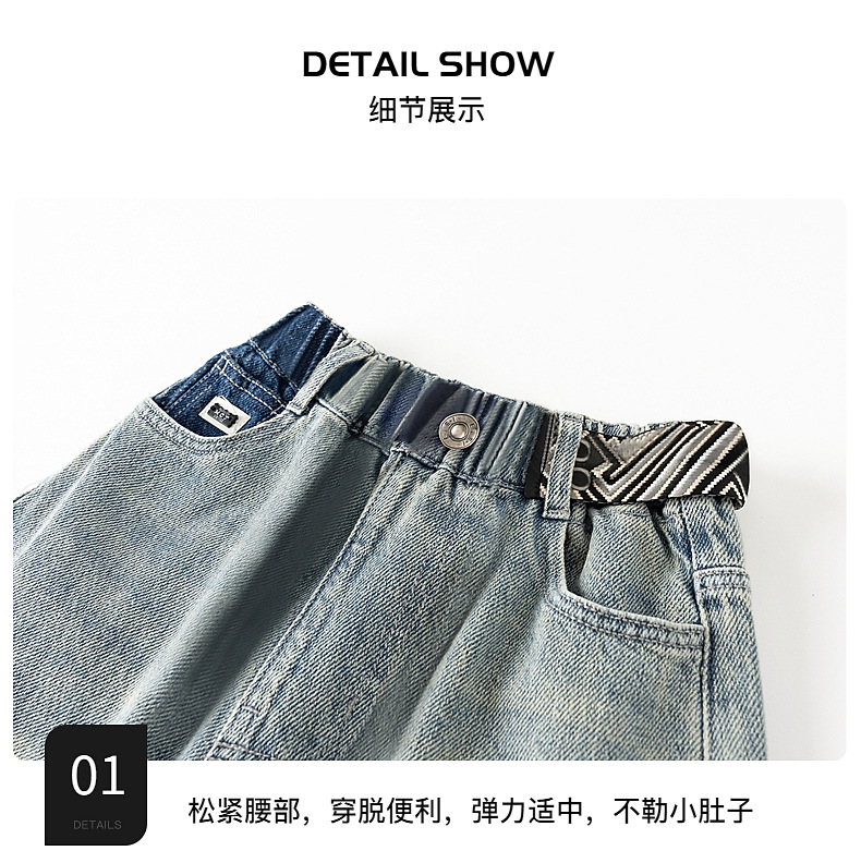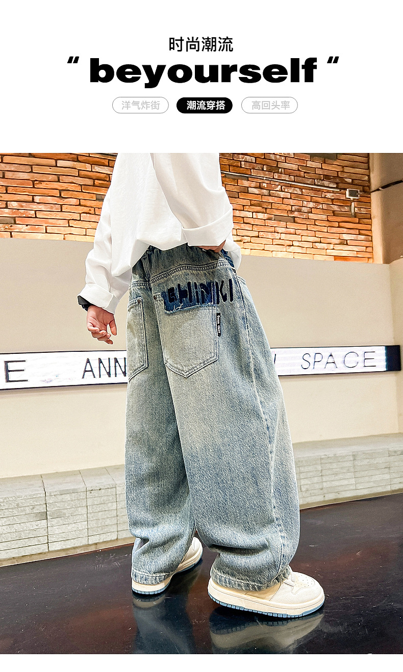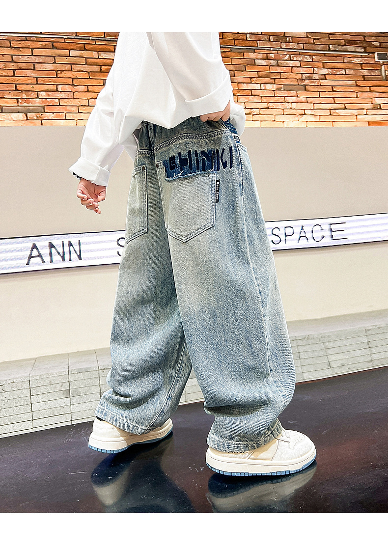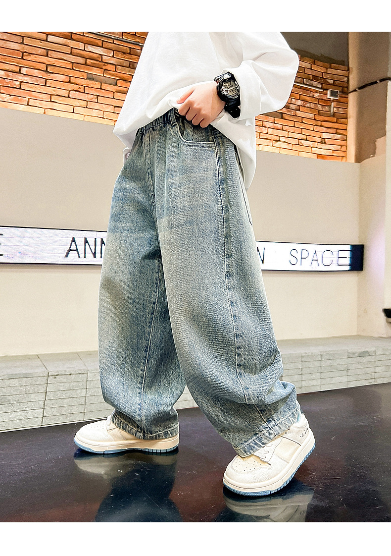 소년 봄, 가을 한국 스트레이트 루즈 청바지 2025 새로운 스타일 어린이 소년 가을 의류 루즈하고 잘 생긴 바지 유행